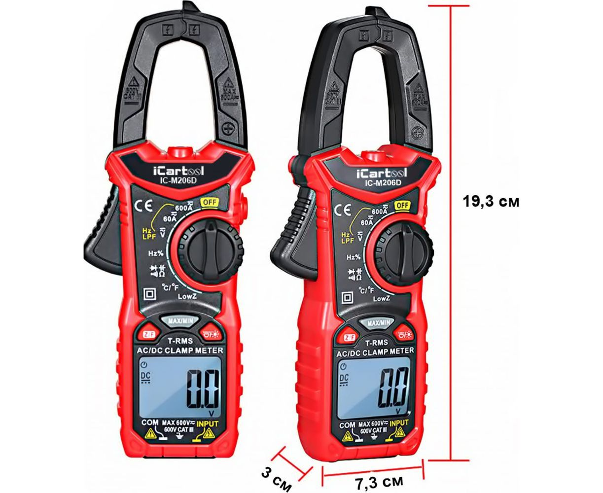 Токовые клещи iCartool 6000 отсчетов, True RMS, LowZ, DCA ZERO IC-M206D