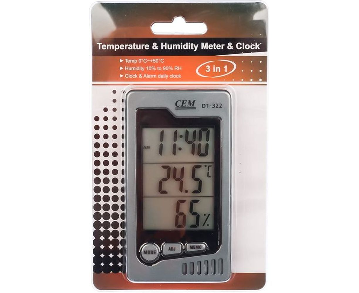 Термо-гигрометр СЕМ DT-322 481707 идеально подходит для бытового применения. Модель без труда размещается на рабочем столе, в детской или ванной комнате, на утепленной лоджии. Прибор совмещает в себе функции термометра, гигрометра и часов, что расширяет сферу его применения. Диапазон измеряемых температур составляет 0-50 градусов. Термо-гигрометр точно и быстро измеряет влажность воздуха от 10% до 90%. Показания прибора крупно отображаются на дисплее для удобства считывания.