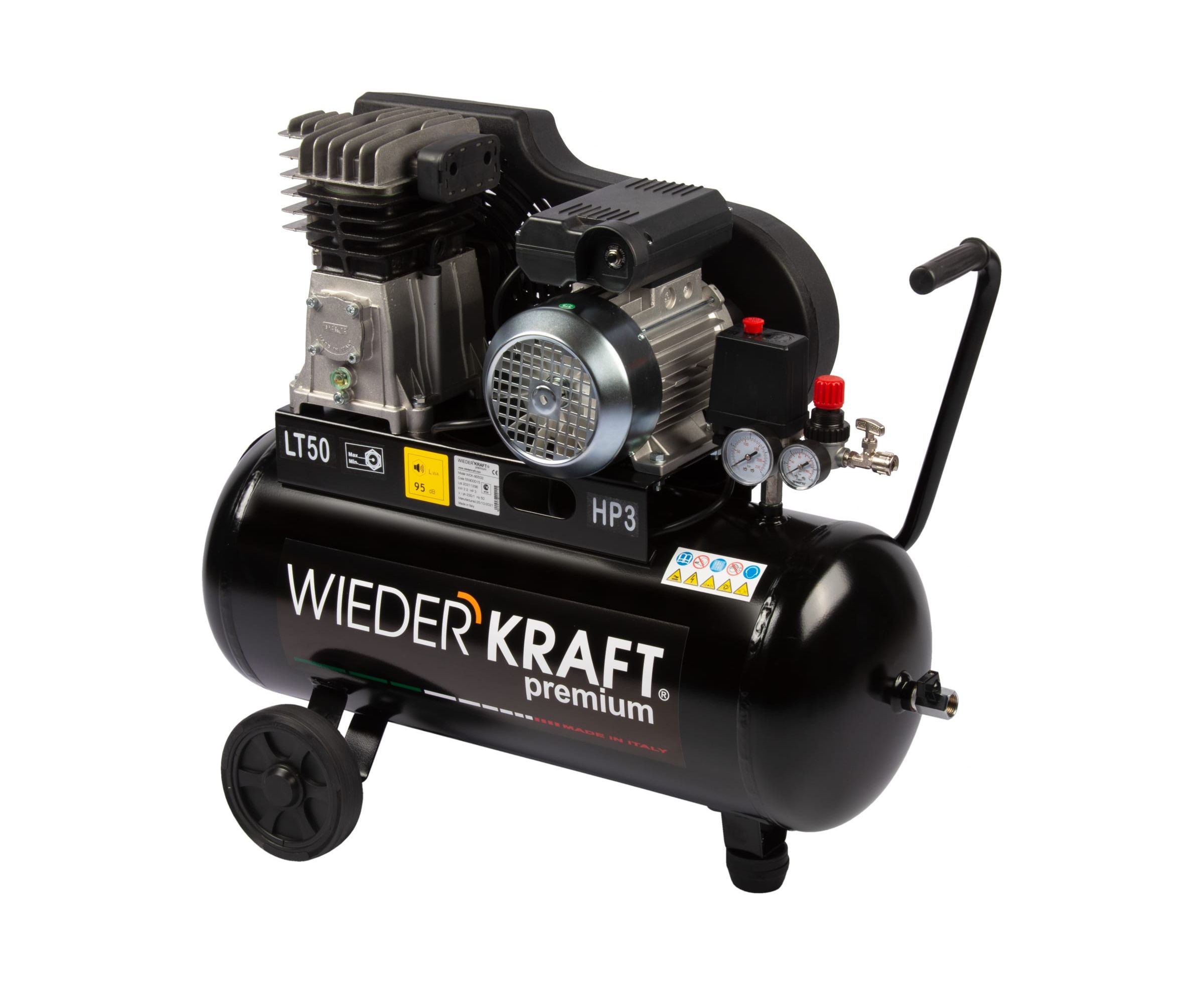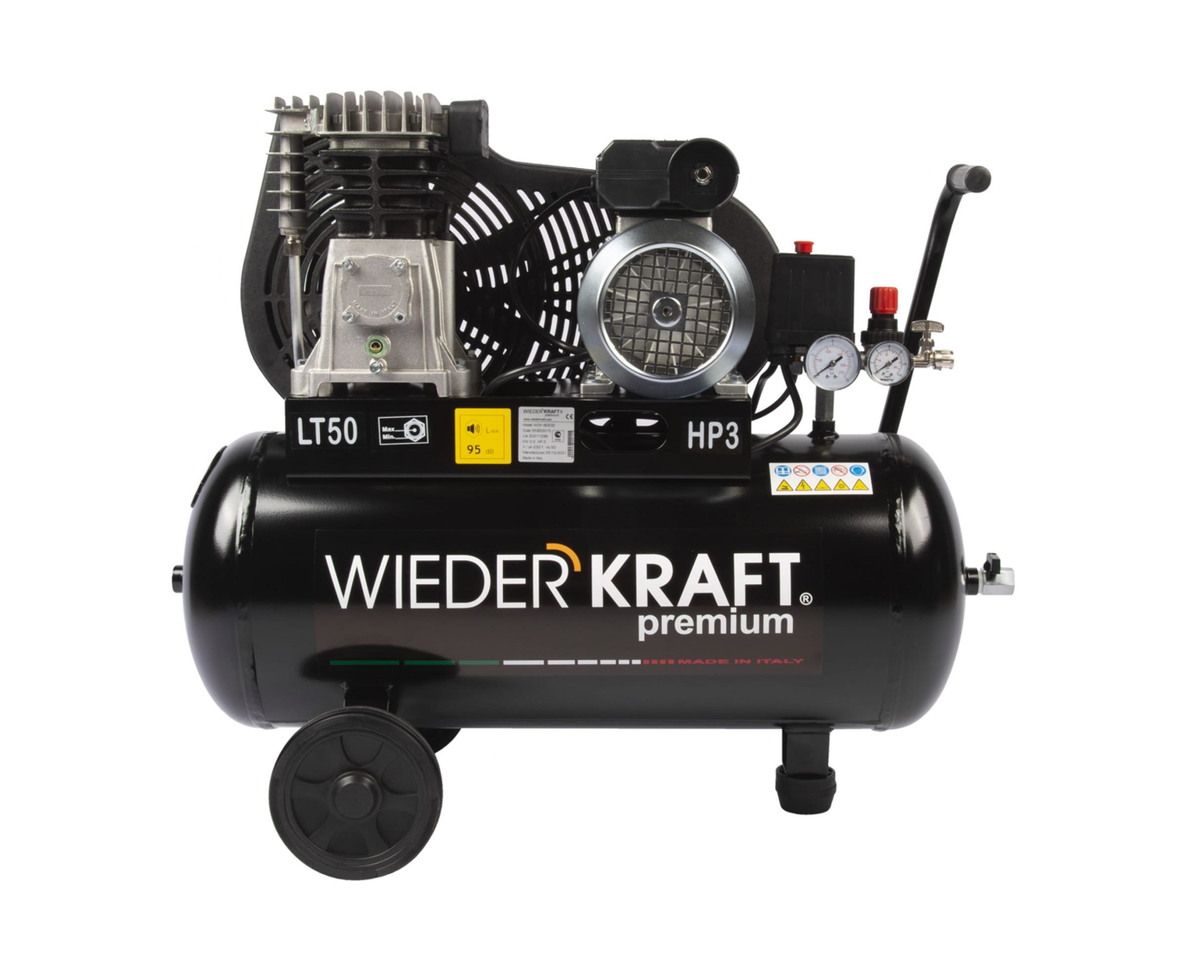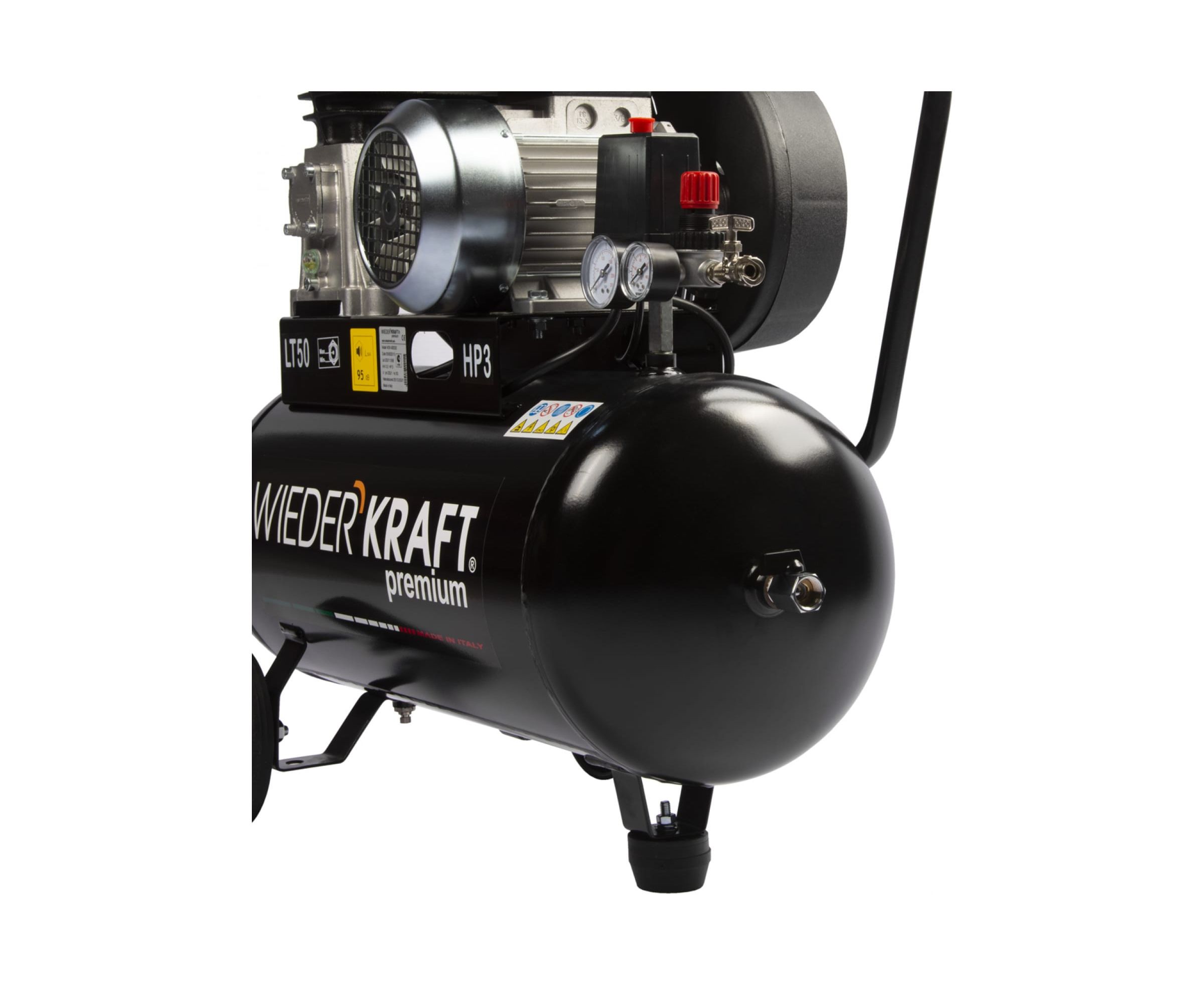 Двухцилиндровый ременной компрессор WIEDERKRAFT 50л 320л/мин WDK-90532 подойдет для различных работ в автомастерской, которая требует использования пневматического инструмента.
