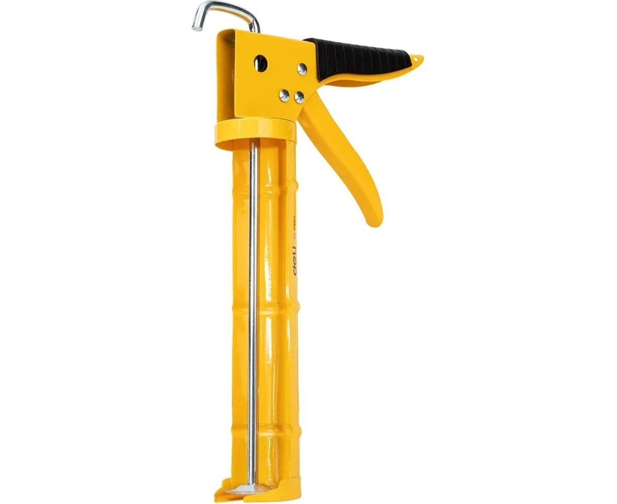 Пистолет для герметика DELI DL2350 98424 изготовлен из высококачественной стали А3 в полузакрытом корпусе с углом поворота 360 градусов. Пластиковая накладка с насечками способствует уменьшению скольжения во время работы.