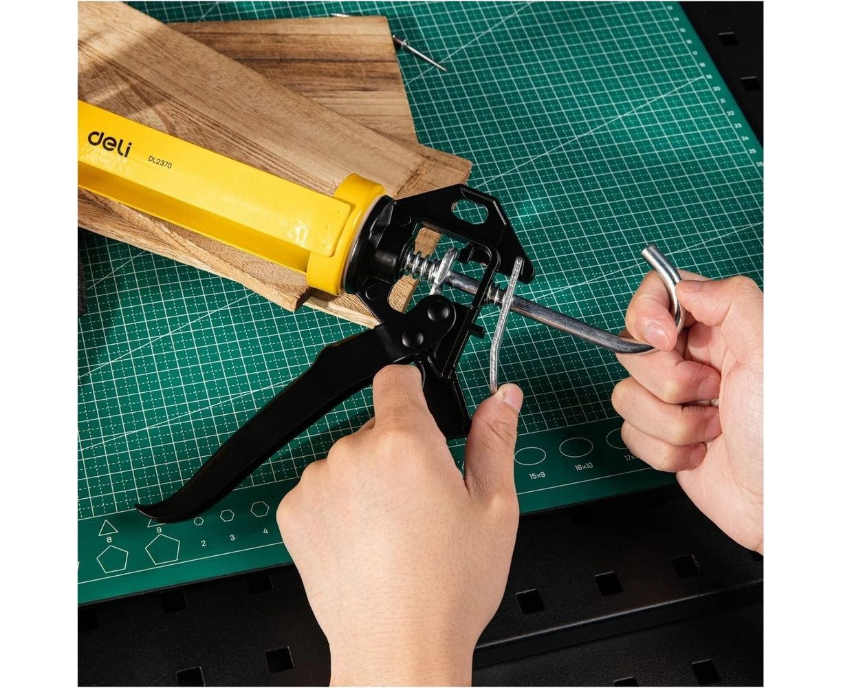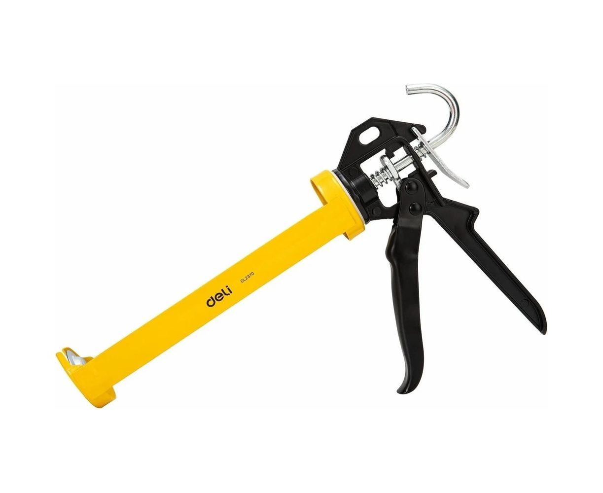 Пистолет для герметика DELI DL2370 98425 изготовлен из высококачественной стали А3 в полузакрытом корпусе с углом поворота 360 градусов. Увеличенный размер (250 мм) позволяет применять герметики или клей в тубах большего объёма.