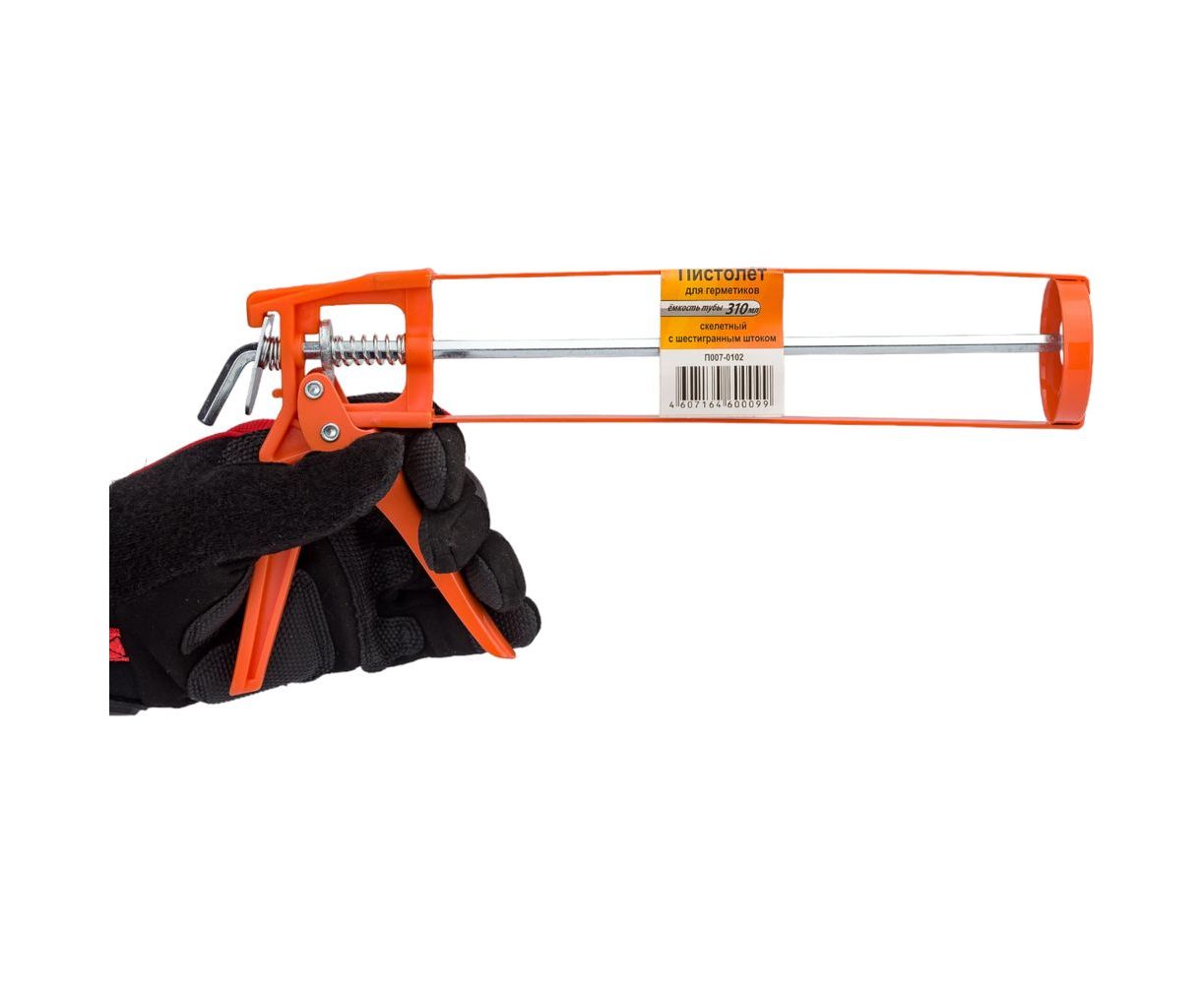 Скелетный пистолет для герметика Петрович П007-0102 4100000367 предназначен для работы с герметиками и клеевыми составами, упакованными в тубы ёмкостью 310 мл, при строительно-монтажных работах.