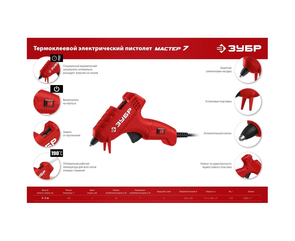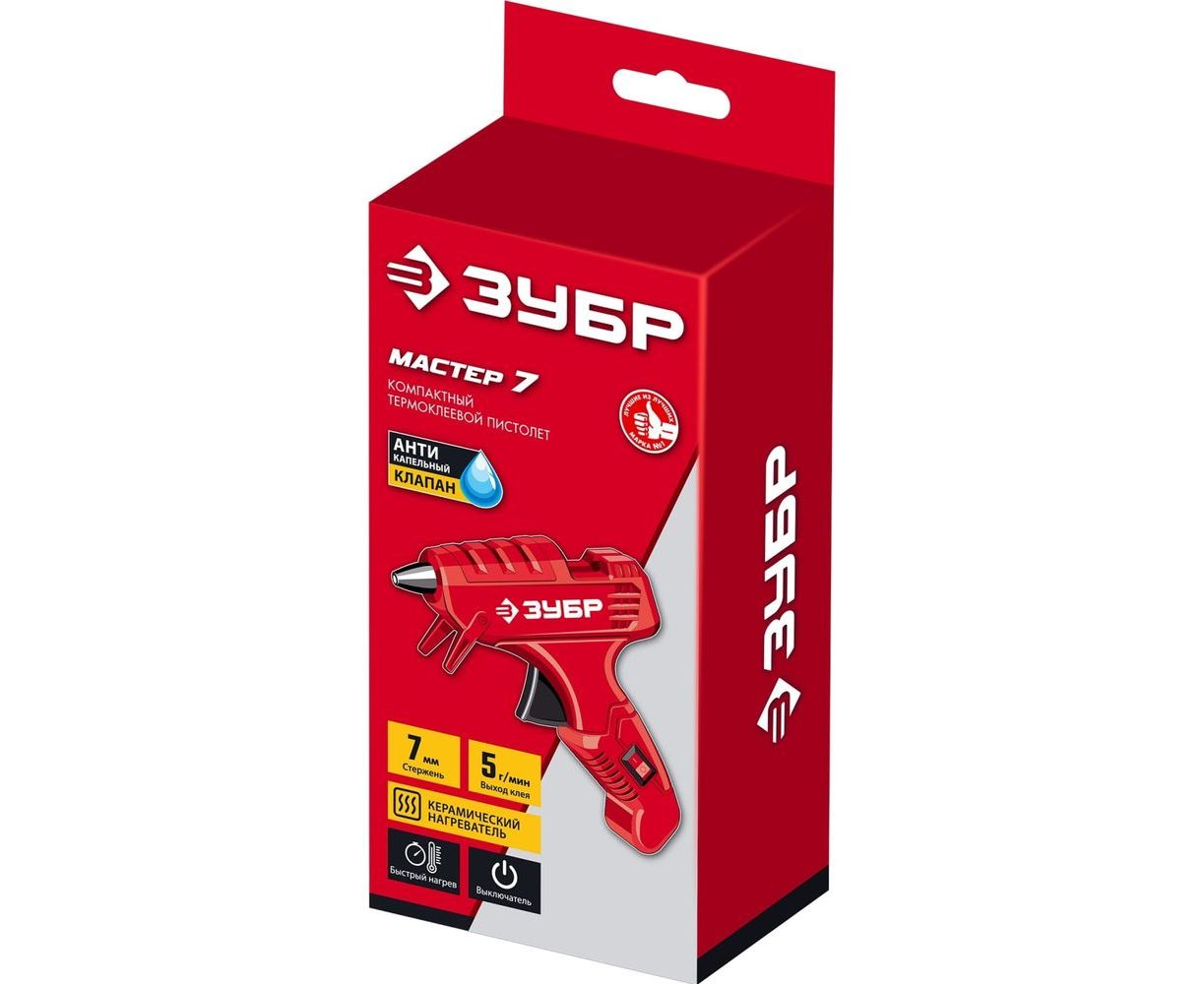 Термоклеевой электрический пистолет ЗУБР Мастер 7, d 7 мм, 5 г/мин 06851-7
