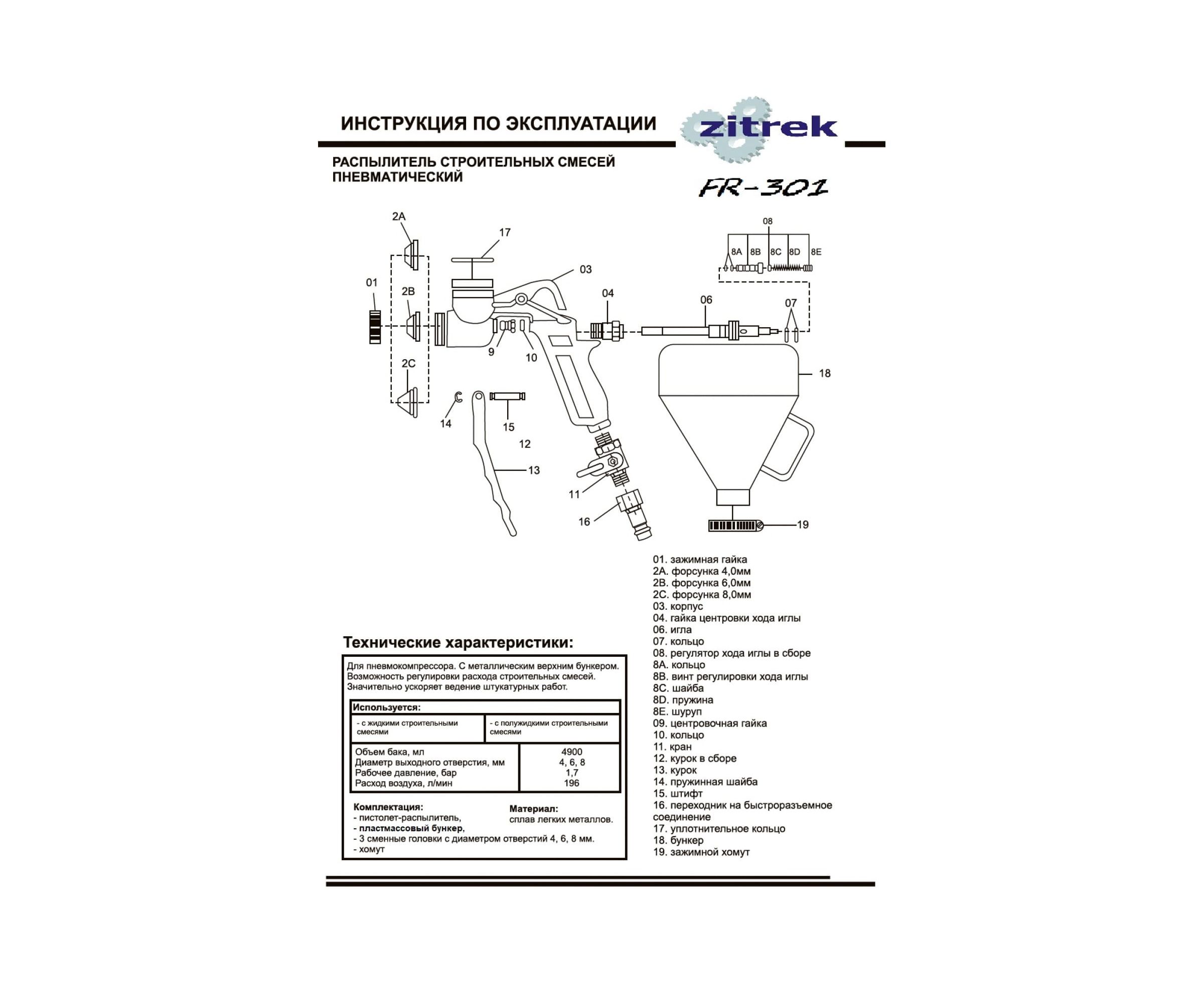 Декоративно-отделочный пневмораспылитель Zitrek FR 301 018-2480