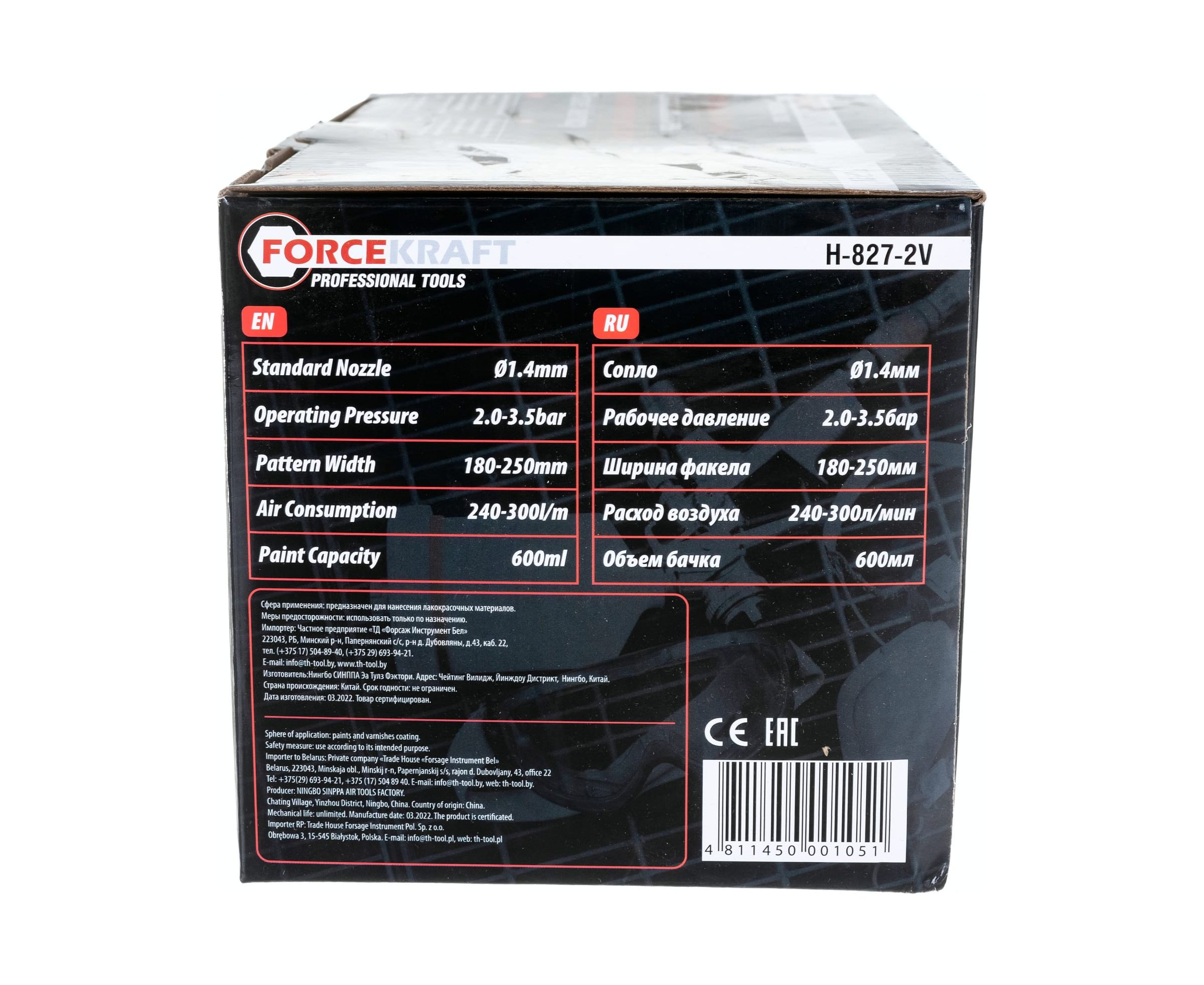 Краскораспылитель с верхним пластиковым бачком FORCEKRAFT FK-H-827-2V 50325 предназначен для нанесения любых лакокрасочных покрытий.