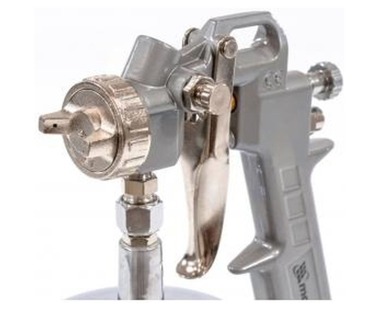 Пневматический краскораспылитель MATRIX 57316 используется при наружных и внутренних отделочных работах. С его помощью производится нанесение защитных, декоративных и изоляционных покрытий на различные поверхности. Пистолет имеет металлическую конструкцию, что обеспечивает надежность и устойчивость к механическим повреждениям. В комплект входят сопла диаметром 1.2, 1.5 и 1.8 мм.