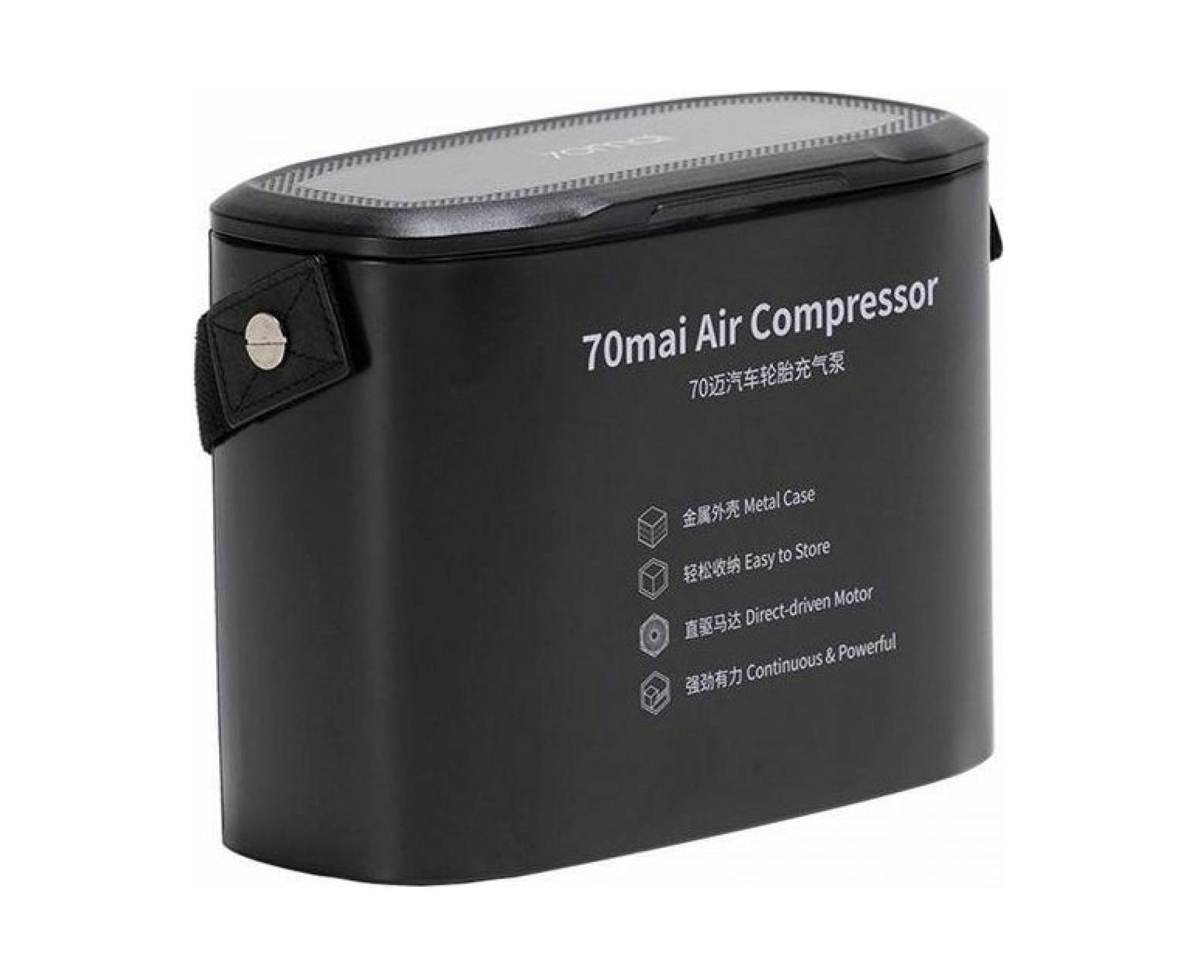 Пневматический насос-компрессор для подкачки шин и бытовых изделий 70mai Air Compressor Midrive Midrive TP01 выполнен в форме небольшого металлического ящика с удобной ручкой-лямкой.