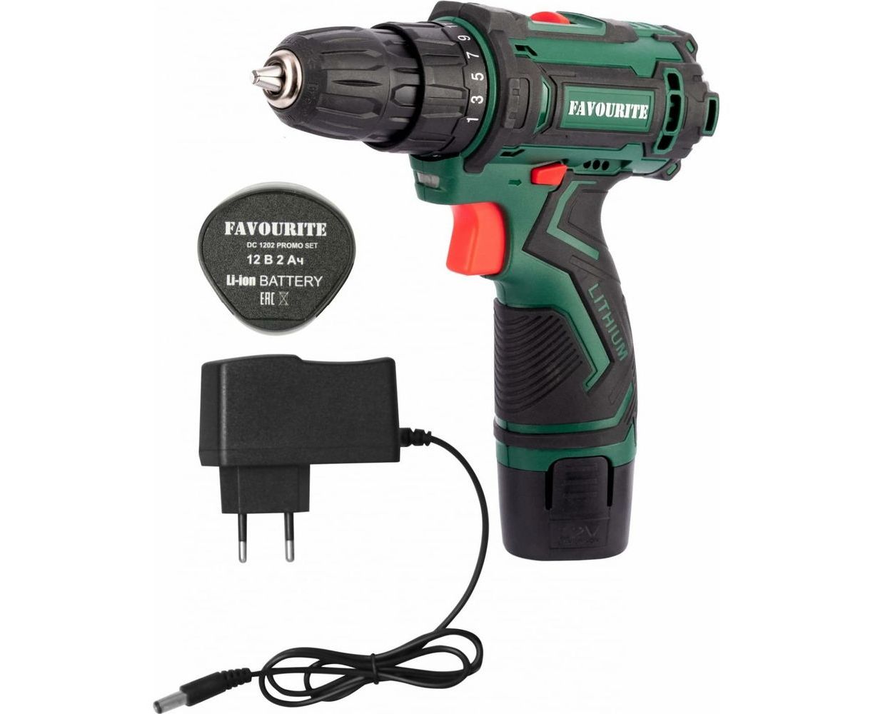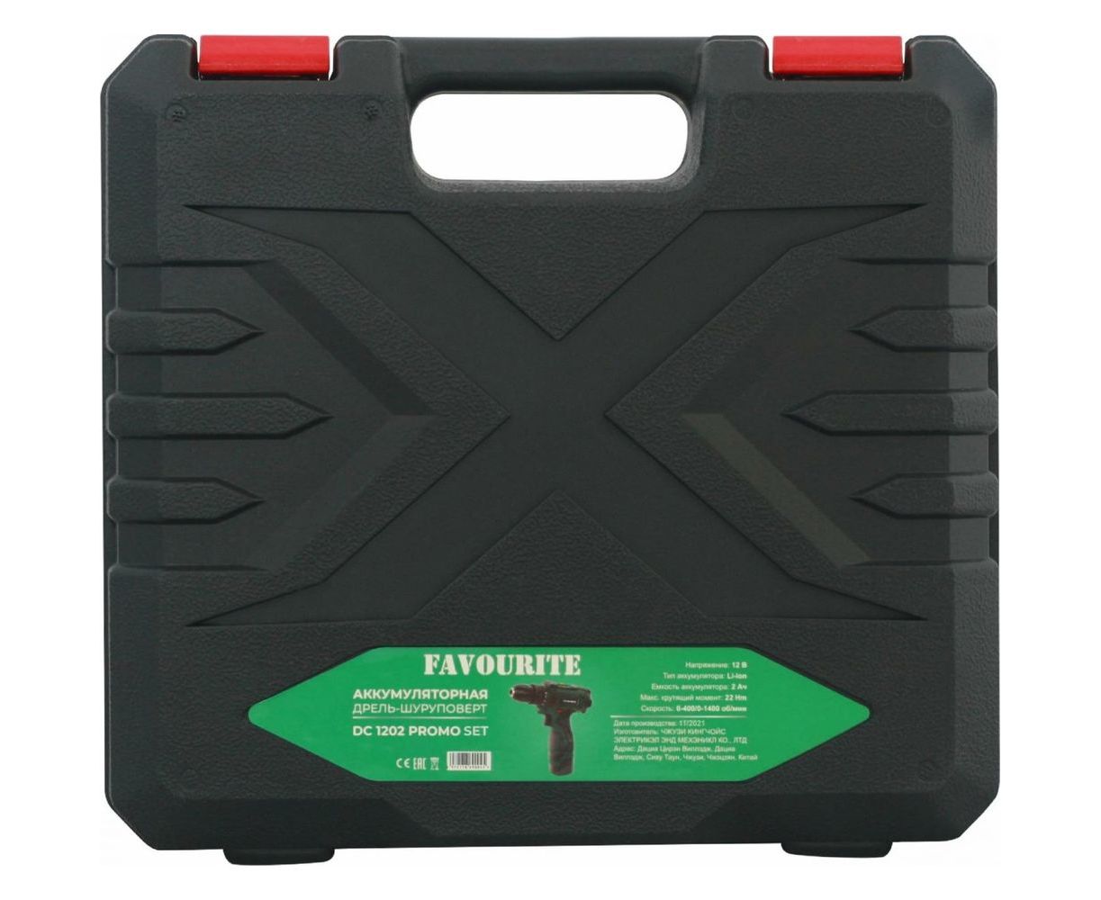 Аккумуляторная дрель-шуруповерт FAVOURITE + набор оснастки DC 1202 PROMO SET