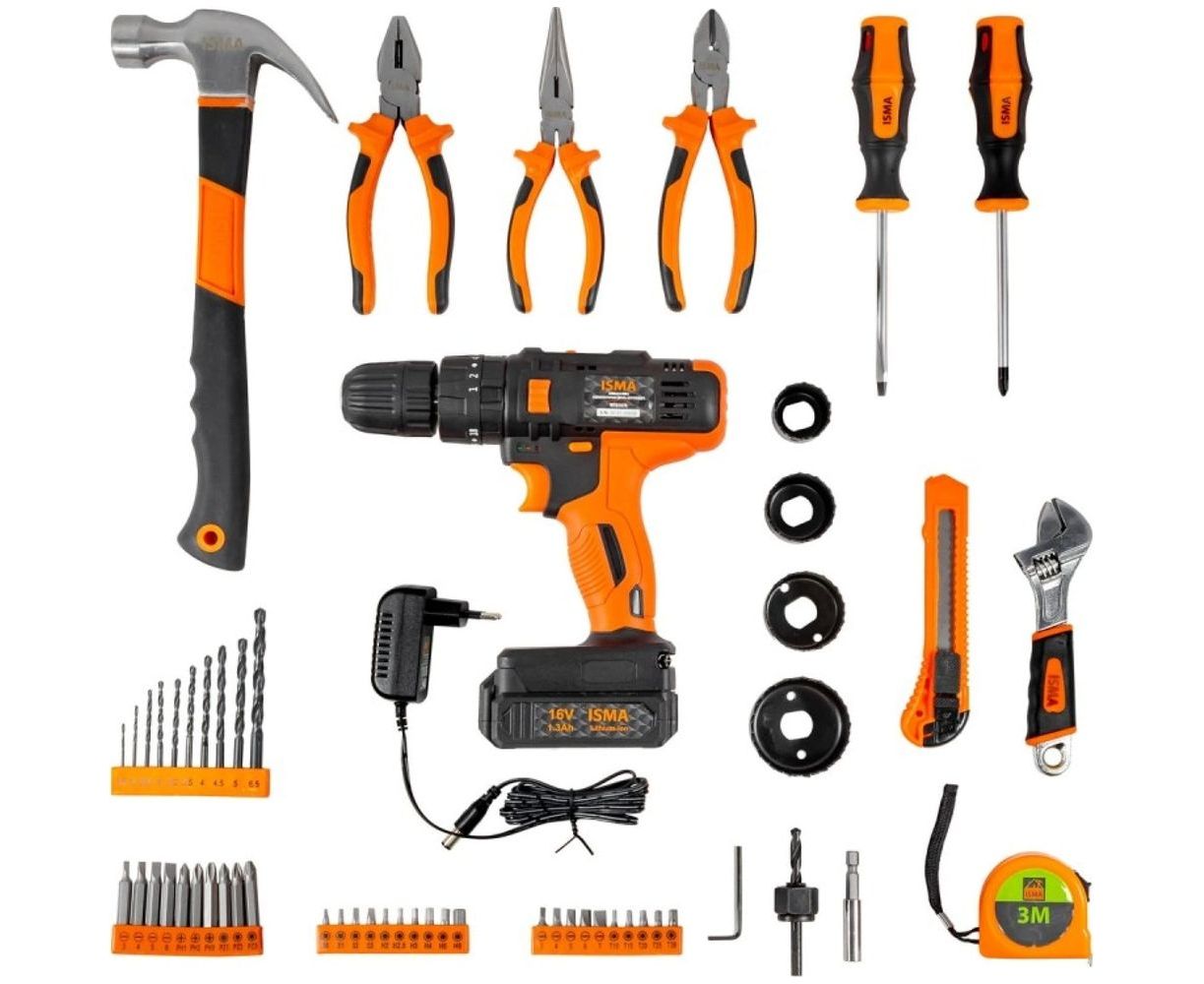 Набор инструментов с аккумуляторным шуруповертом ISMA 57 предметов, 16 В, 1.3 Ач 1057(50646)