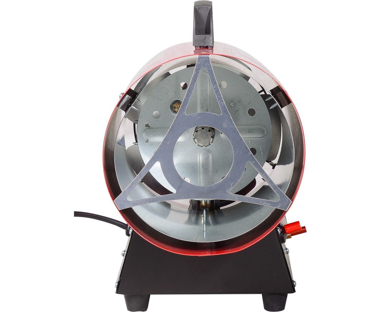Теплопушка работает на сжиженном газе. Это может быть пропан, бутан или смесь пропан-бутан. Модель оснащена пьезоэлектрическим элементом для удобного розжига топлива, регулятором давления, биметаллическим термодатчиком для контроля пламени, имеет защиту от перегрева. В случае угасания пламени газ сразу перестает поступать в горелку, при нагреве до критической температуры +110 градусов автоматически отключается электрика. Принцип работы тепловой пушки заключается в подаче в устройство холодного воздуха посредством мощного вентилятора, его нагреве и последующем перемешивании холодных и горячих потоков для быстрого обогрева окружающего пространства. При необходимости подачу топлива можно перекрыть и использовать устройство для вентилирования помещения. Газовая теплопушка весит 4,8 кг и для более удобной переноски оснащена ручкой.