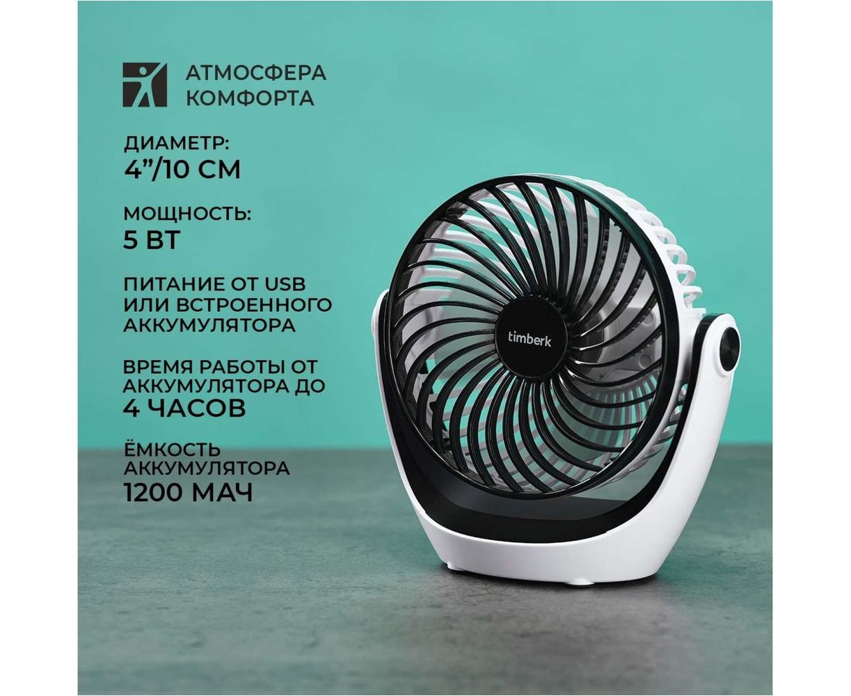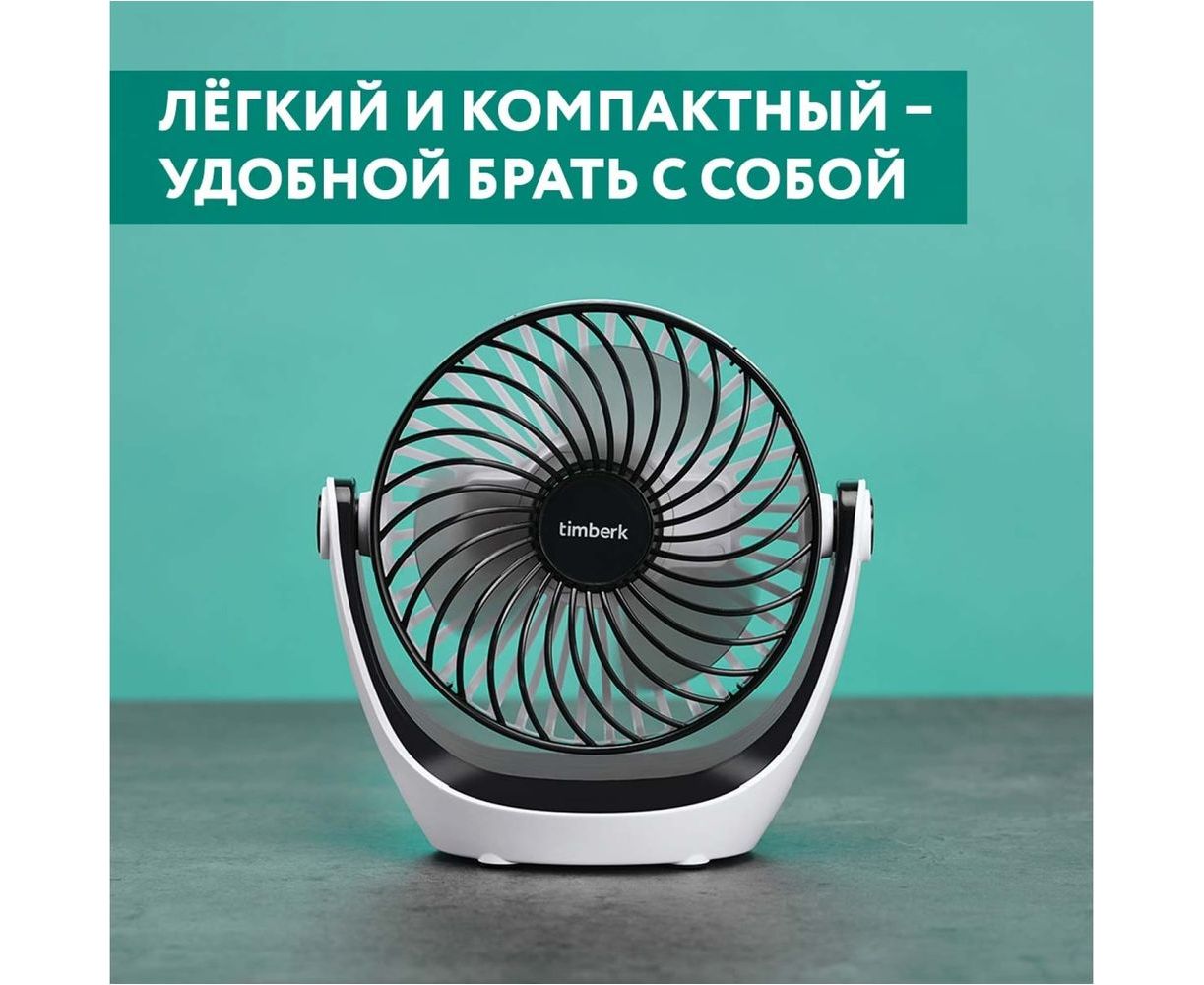 Настольный вентилятор с аккумулятором Timberk белый T-DF421 - легкий и компактный прибор для охлаждения воздуха.