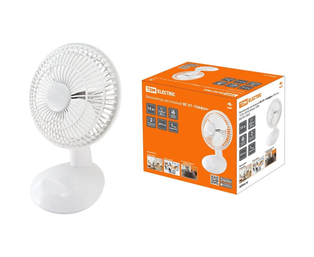 Настольный вентилятор TDM ВС-01 ""Тайфун"", диаметр 15 см, 15 Вт, 230 В, белый, SQ2701-0002