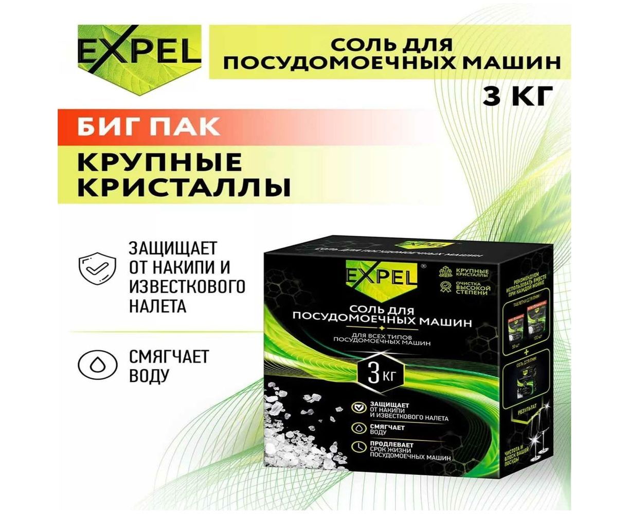 Хотите, чтобы ваша посудомоечная машина служила много лет, а на посуде не оставались белые разводы и подтёки? Тогда Соль для посудомоечных машин Expel 3 кг TS00028,W поможет в решении этого вопроса! Действительно, из-за сильной жесткости воды на деталях посудомоечной машины зачастую образуются накипь и известковый налёт, которые могут привести к ее поломке. Но при регулярном использовании крупнокристаллической соли Expel вы не столкнётесь с этой проблемой, а также, сможете предотвратить образование разводов и подтеков на посуде и стекле.