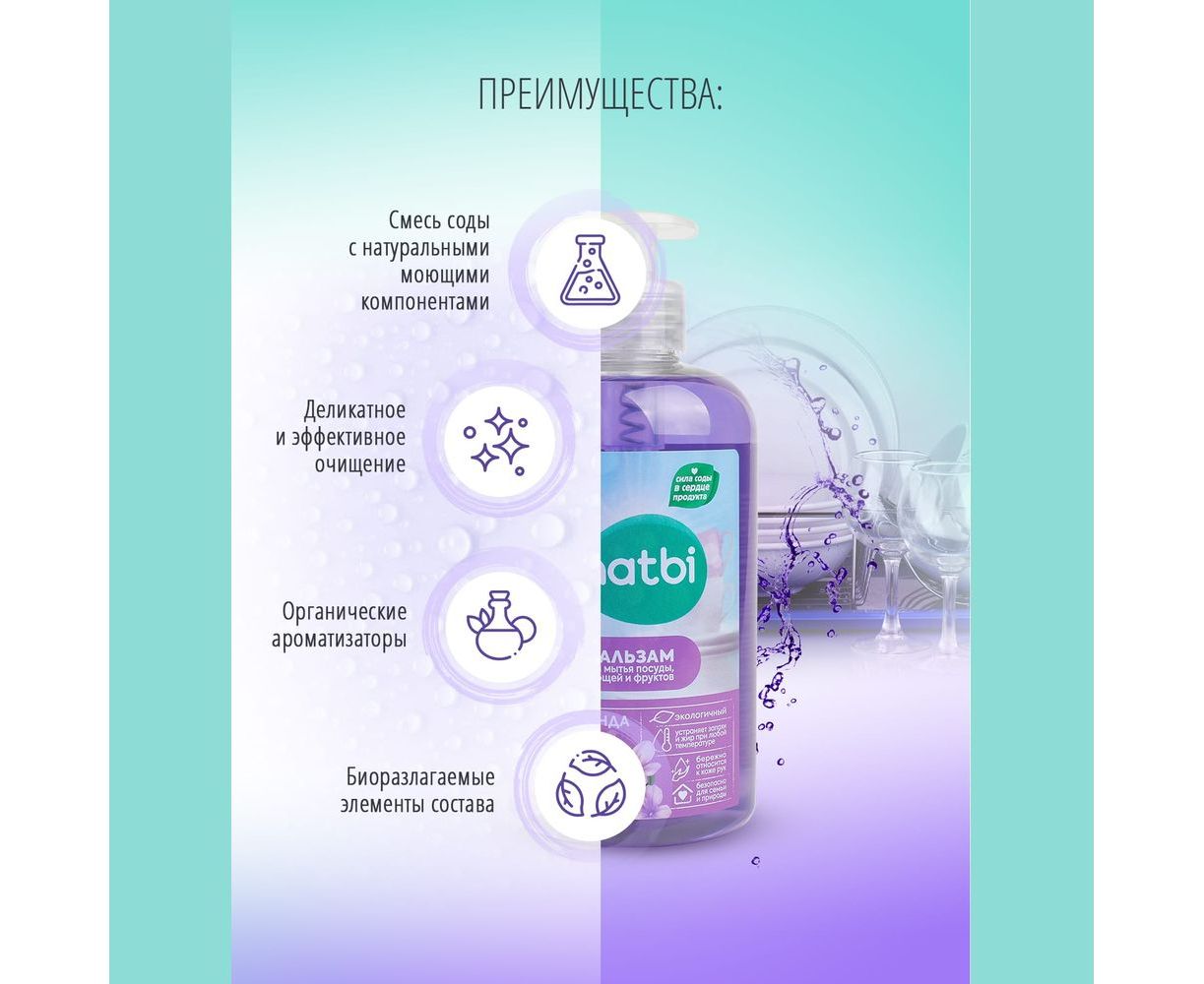 Хозяйственная жидкость NATBI для мытья посуды - это бытовая химия без хлора, фосфатов, энзимов, формальдегидов и растворителей. Полностью биоразлагается в воде, не вредит микрофлоре септических установок. Безопасно для дома с детьми и животными.