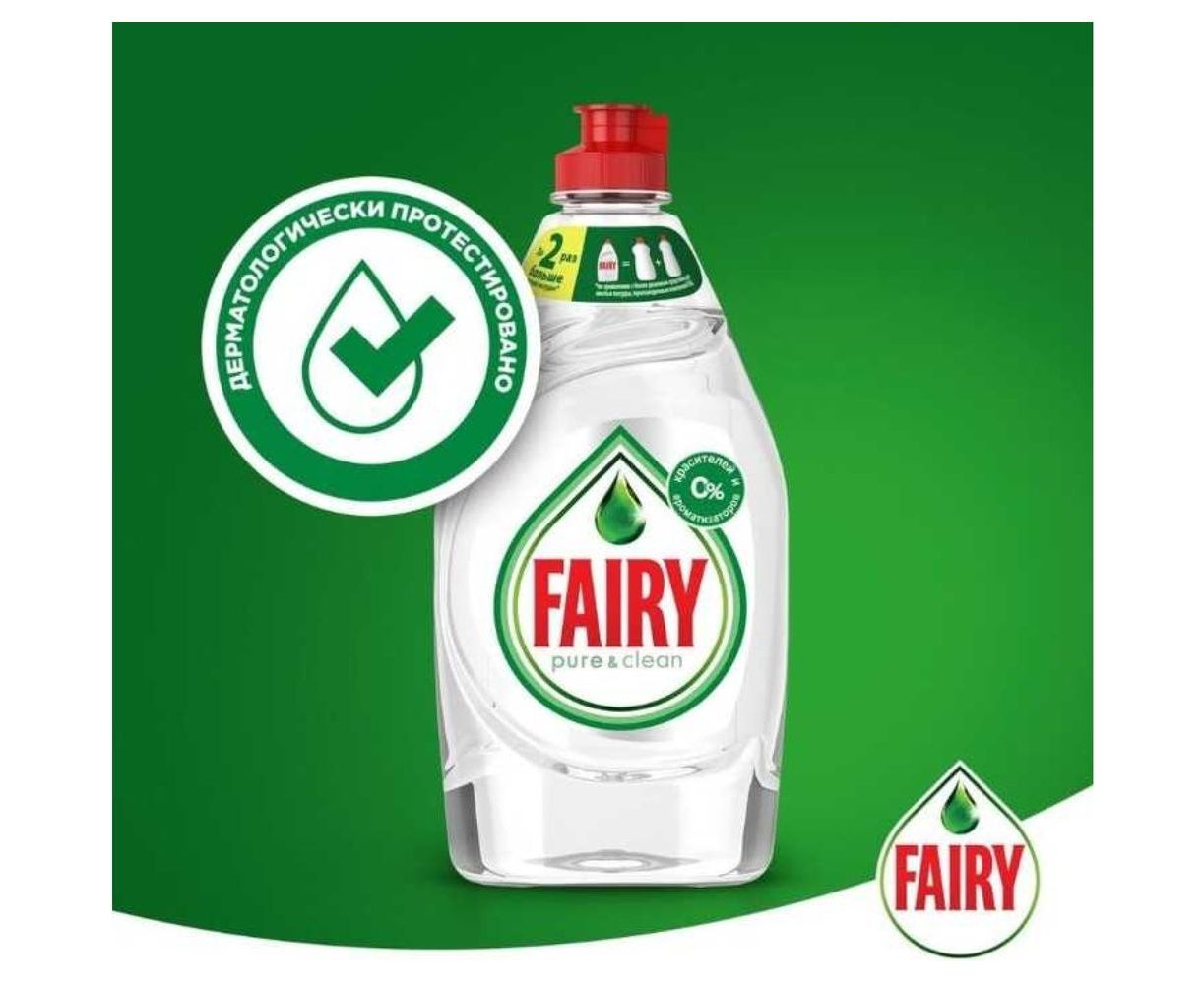 FAIRY Pure & Clean 900 мл 0001009703 - средство, сочетающее в себе проверенную эффективность в борьбе со сложными загрязнениями и формулу без добавления красителей и ароматизаторов.