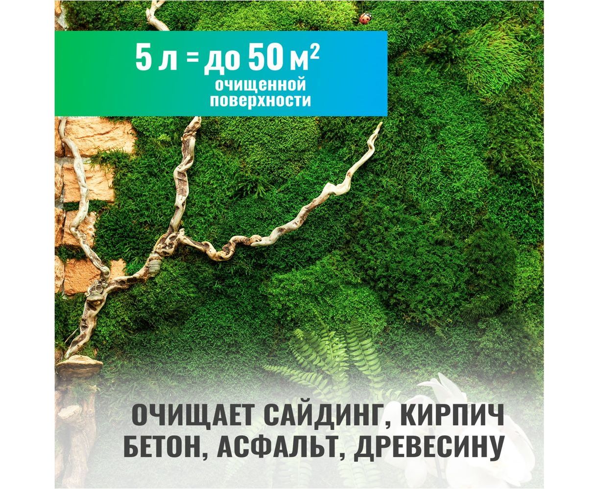 PROSEPT Удалитель мха готовый состав / 5 л 084-5 средство для удаления мха, лишайников и плесени с фасадов, кровли, водосточных труб, балконов, навесов, террас, садовых дорожек.