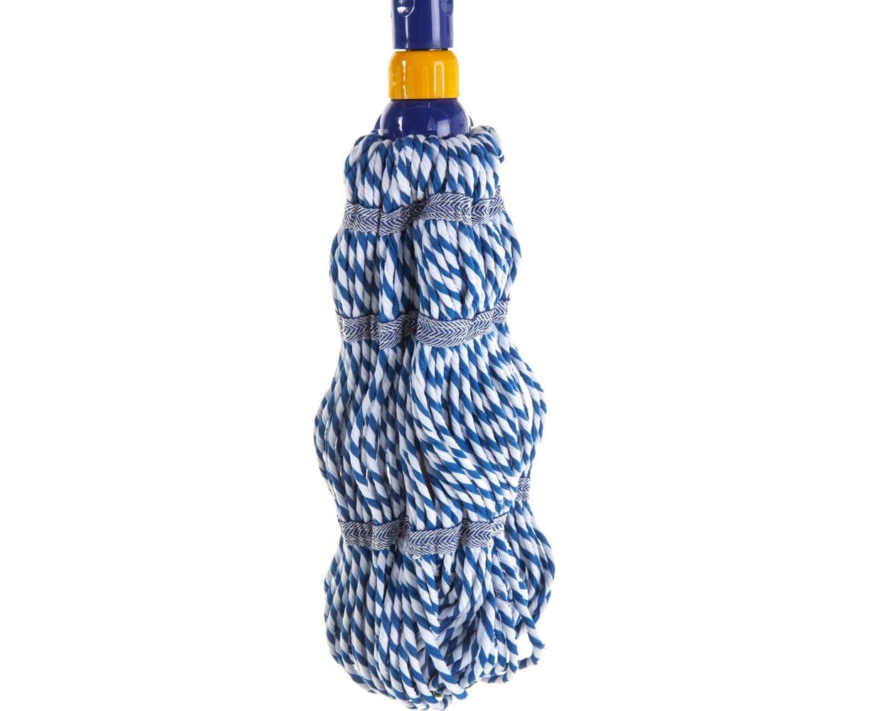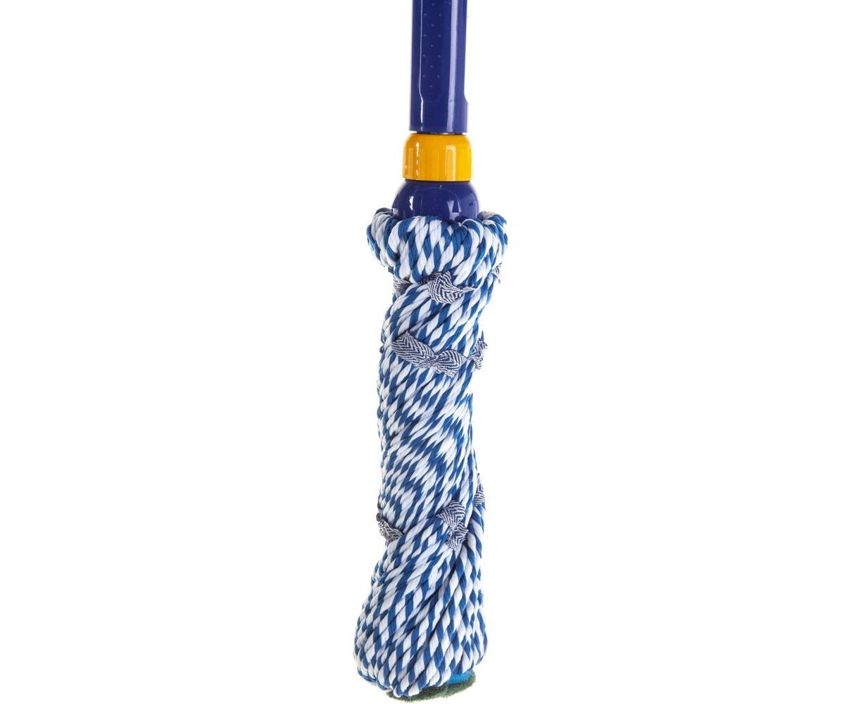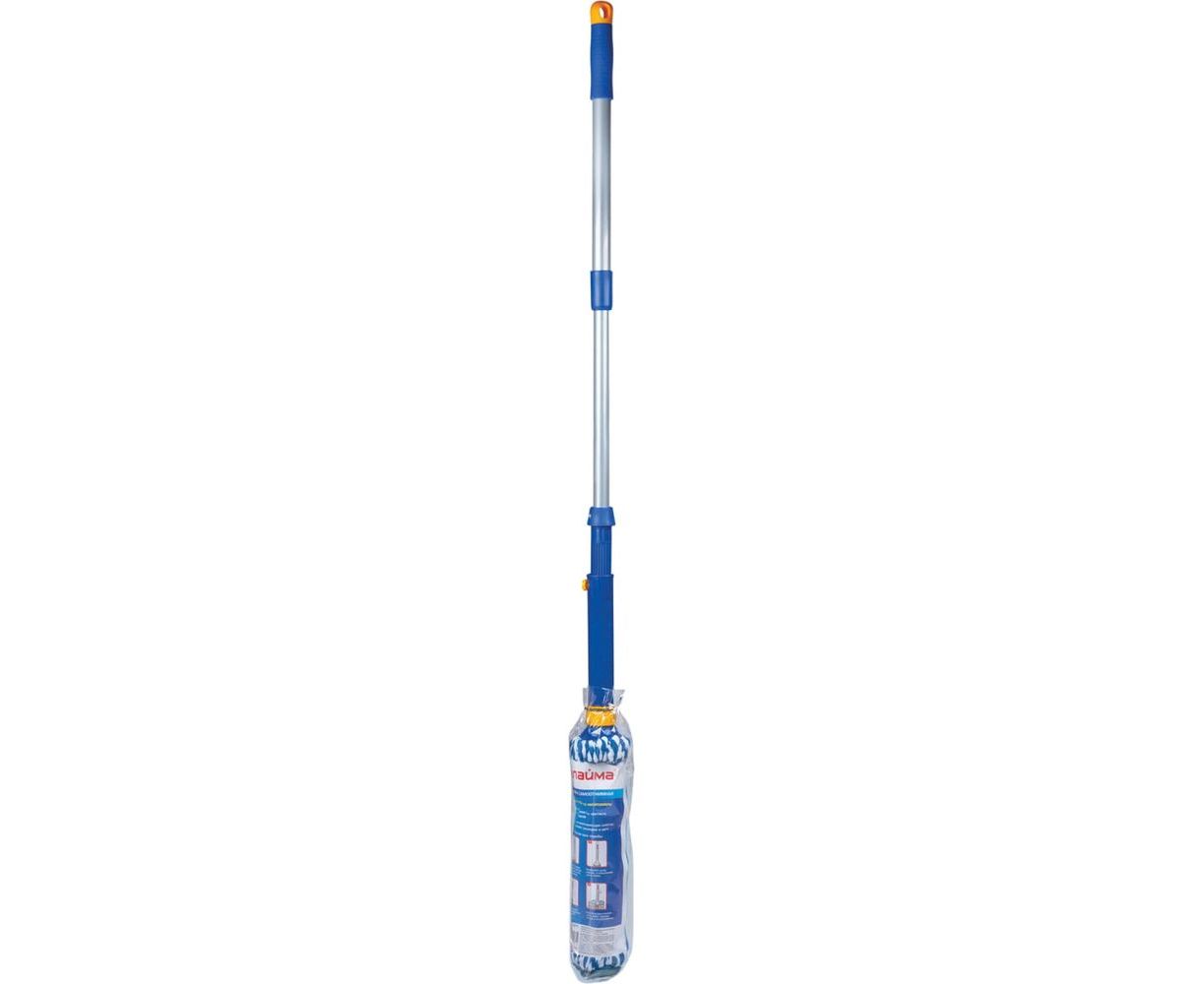 Самоотжимная швабра ЛАЙМА 601471 подходит для мытья различных напольных покрытий. За счет простого отжимного механизма можно избежать контакта рук с водой.