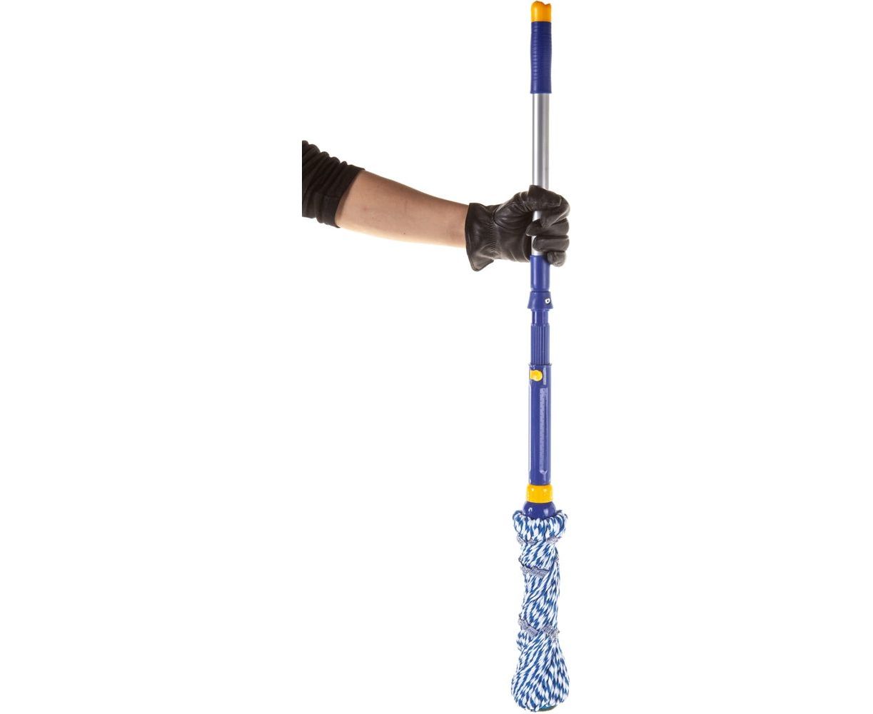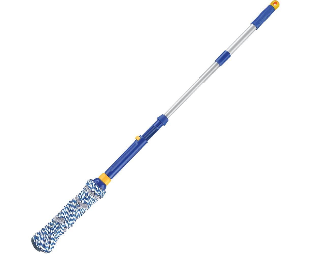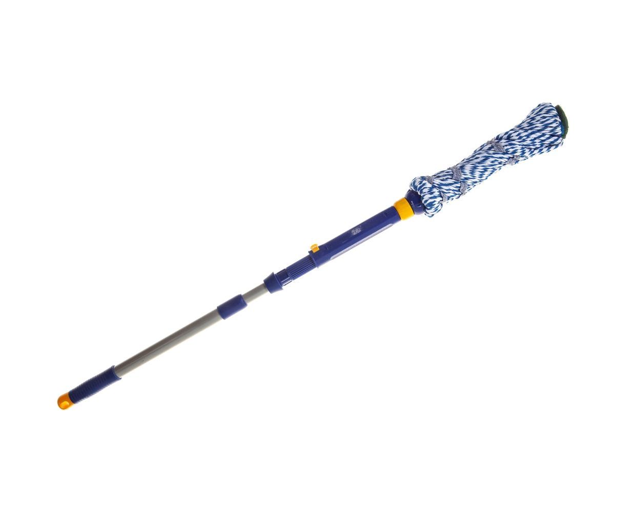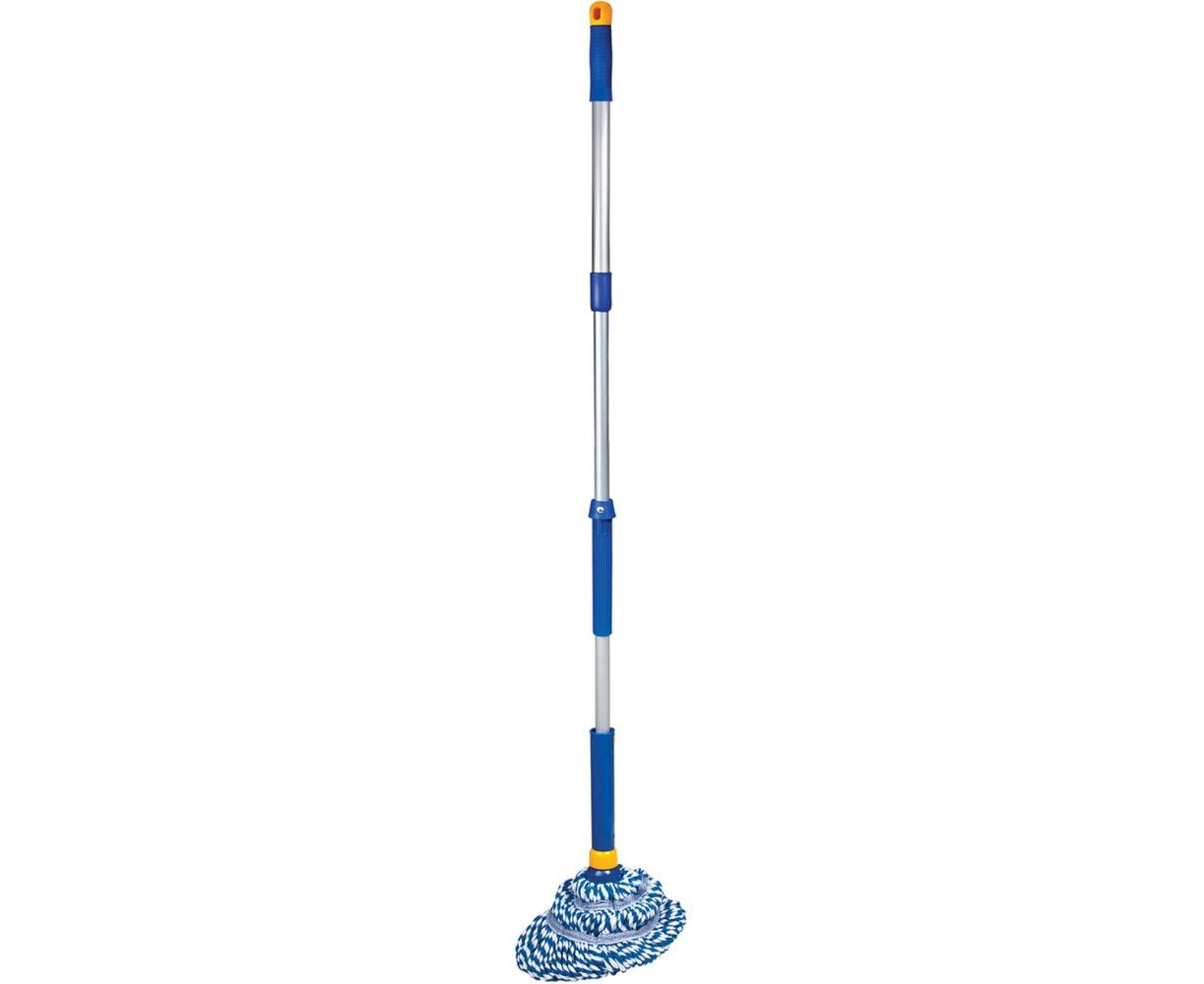 Самоотжимная швабра ЛАЙМА 601471 подходит для мытья различных напольных покрытий. За счет простого отжимного механизма можно избежать контакта рук с водой.
