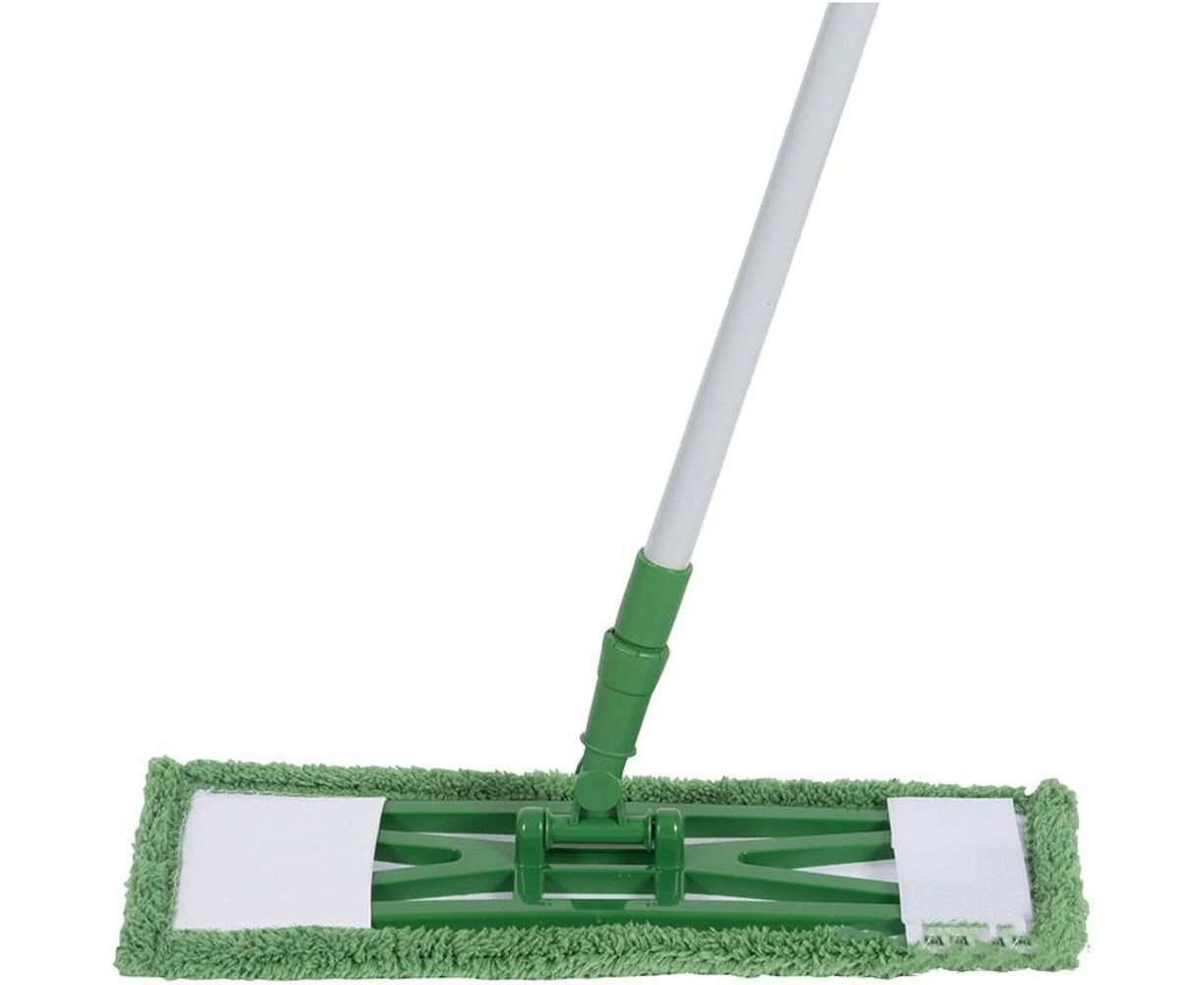 Благодаря насадке из микрофибры швабра хорошо впитывает воду и не царапает поверхность.