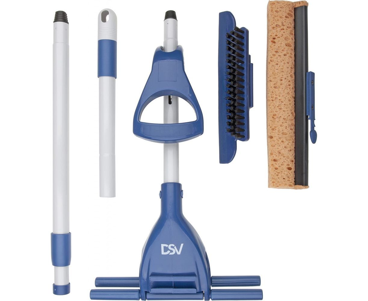 Швабра с отжимом DSV в индивидуальной коробке DS-10118 используется для сухой или влажной уборки.