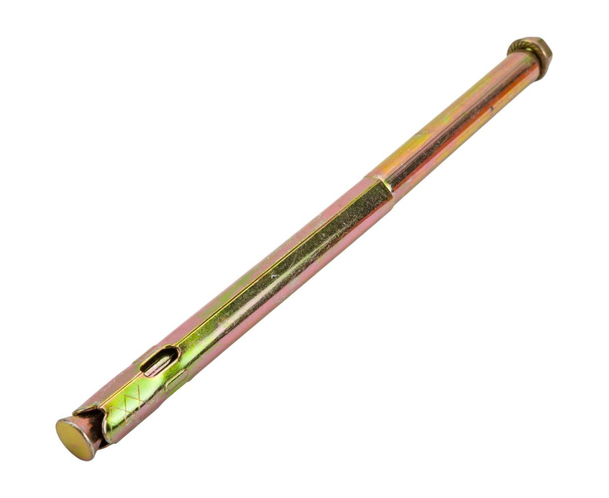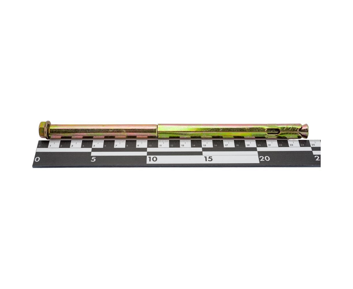 Анкерный болт с гайкой МЕТАЛЛСЕРВИС М14x250 20 шт. 1230403 предназначен для крепления различных конструкций и элементов к основанию из бетона, природного камня или полнотелого кирпича. Оцинкованное покрытие обеспечивает защиту от коррозии. Анкерный болт с гайкой оснащен фиксирующей гильзой, длина которой равна размерам стального стержня. На хвостовой части шпильки выполнена клинообразная головка. При завинчивании гайки она смещается по резьбовой части. В результате перемещения происходит распирание втулки.
