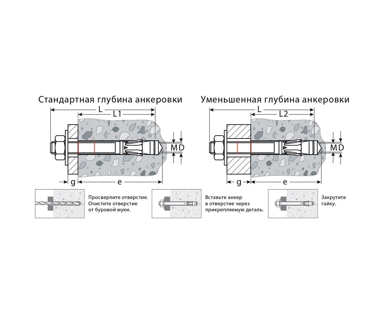Анкерный крепеж KRAFTOOL 302184-12-140 предназначен для крепления различных конструкций к поверхностям из бетона и природного камня. Анкер устанавливается в предварительно просверленное и очищенное от буровой муки отверстие и расклинивается при закручивании гайки. Изготовлен из высококачественной стали, выдерживает высокие нагрузки на вырывание и срез, подтвержденные Европейским техническим допуском (ETA). На резьбу анкера нанесена красная маркировка, которая показывает глубину анкеровки.