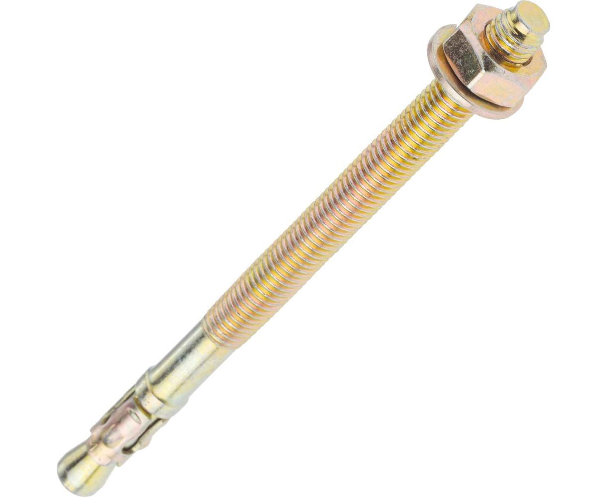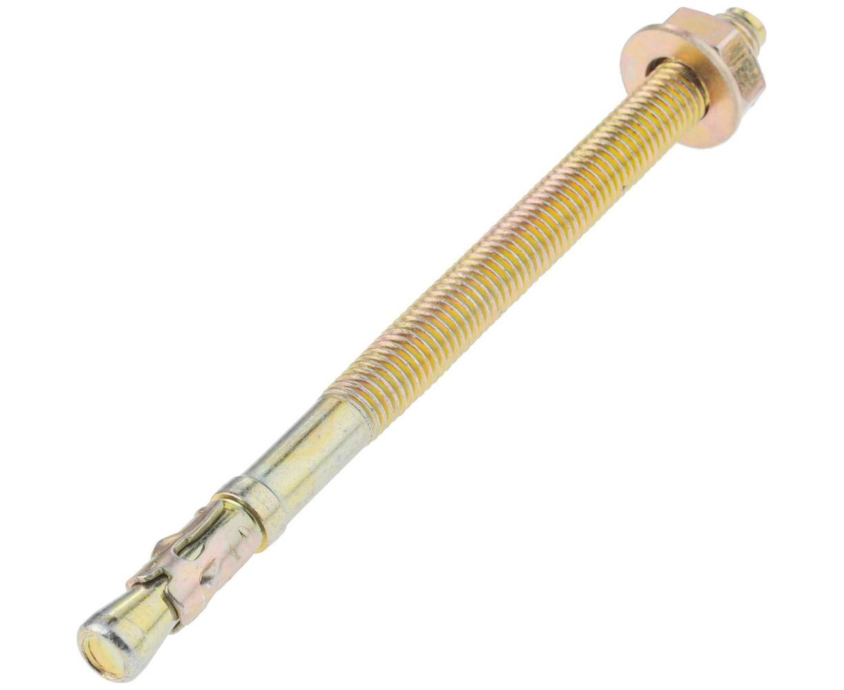 Клиновой анкер Rizzel 10x110 40 шт. 322501 представляет собой крепежный элемент в виде шпильки с резьбой, на одном конце которой располагается шайба с гайкой, на другом - распорный узел с муфтой в форме конуса. Предназначен для крепления разнообразных конструкций к бетону, кирпичу или природному камню (полнотелым основаниям).