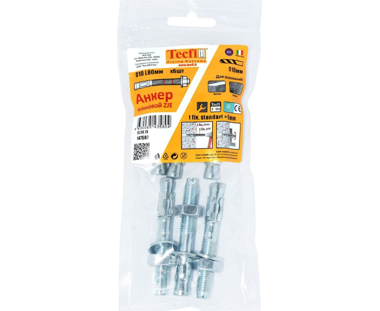Клиновой анкер Tecfi ZJE ZN 10x80, 6 шт. 147567