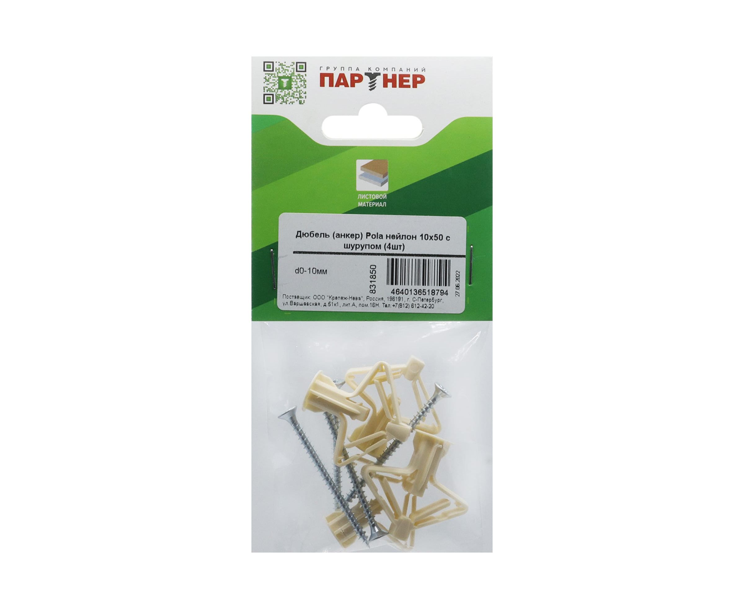 Дюбель (анкер) Партнер Pola нейлон 10x50 с шурупом 4 шт. 831850