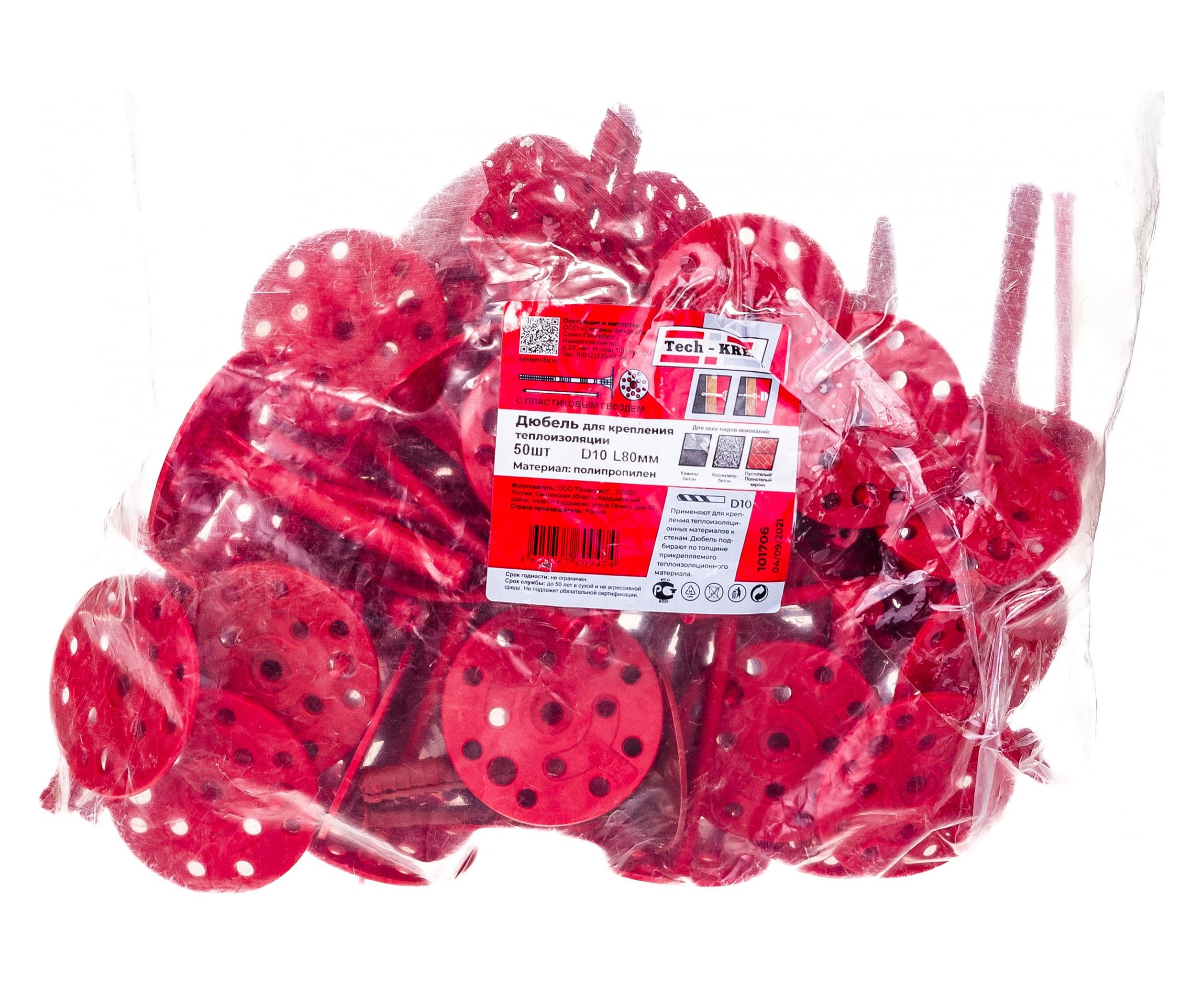 Дюбель для теплоизоляции с пластиковым гвоздём 10х80, 50шт - пакет Tech-Krep 101706