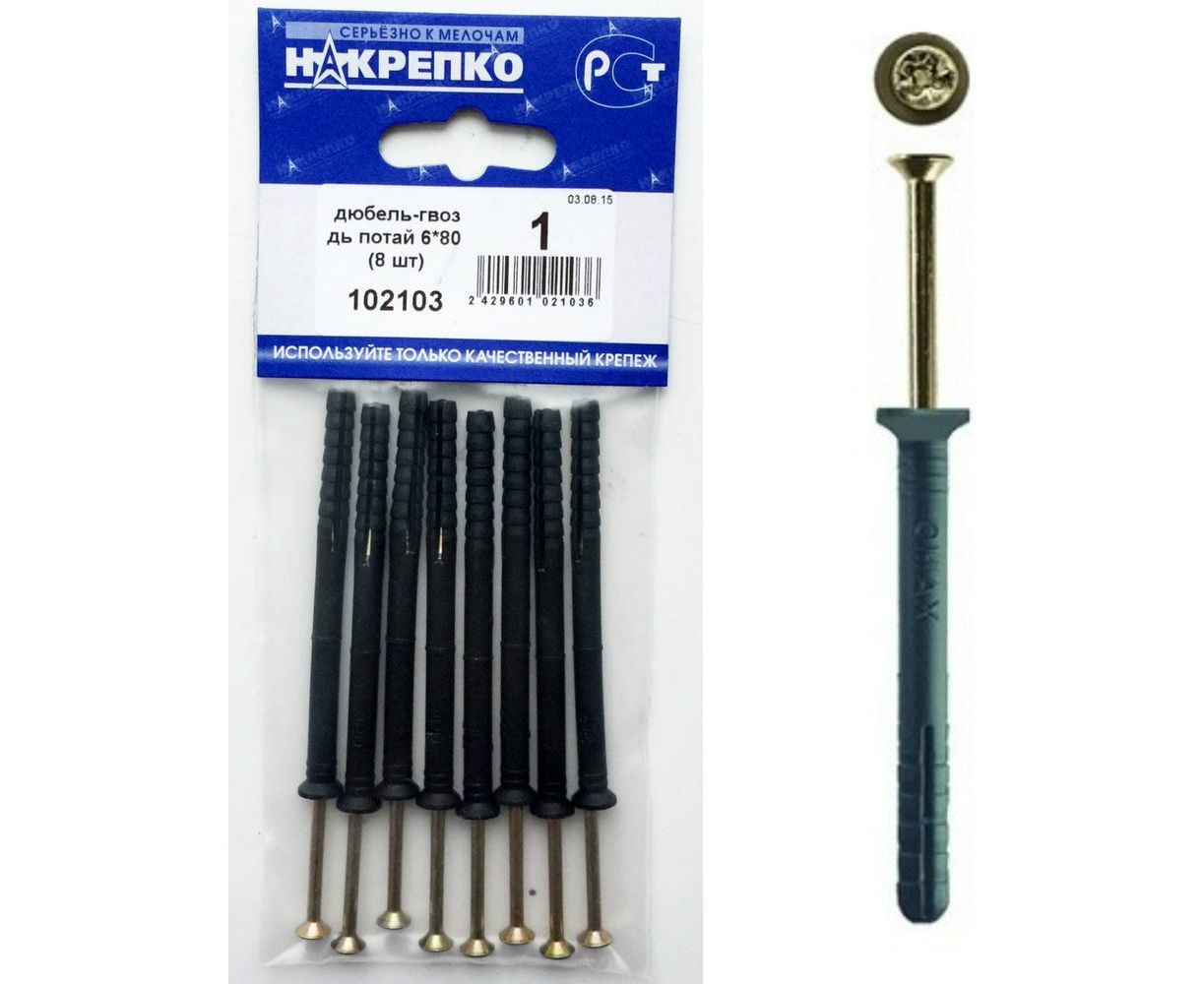 Дюбель-гвоздь НАКРЕПКО потай 6х80 8 шт 102103