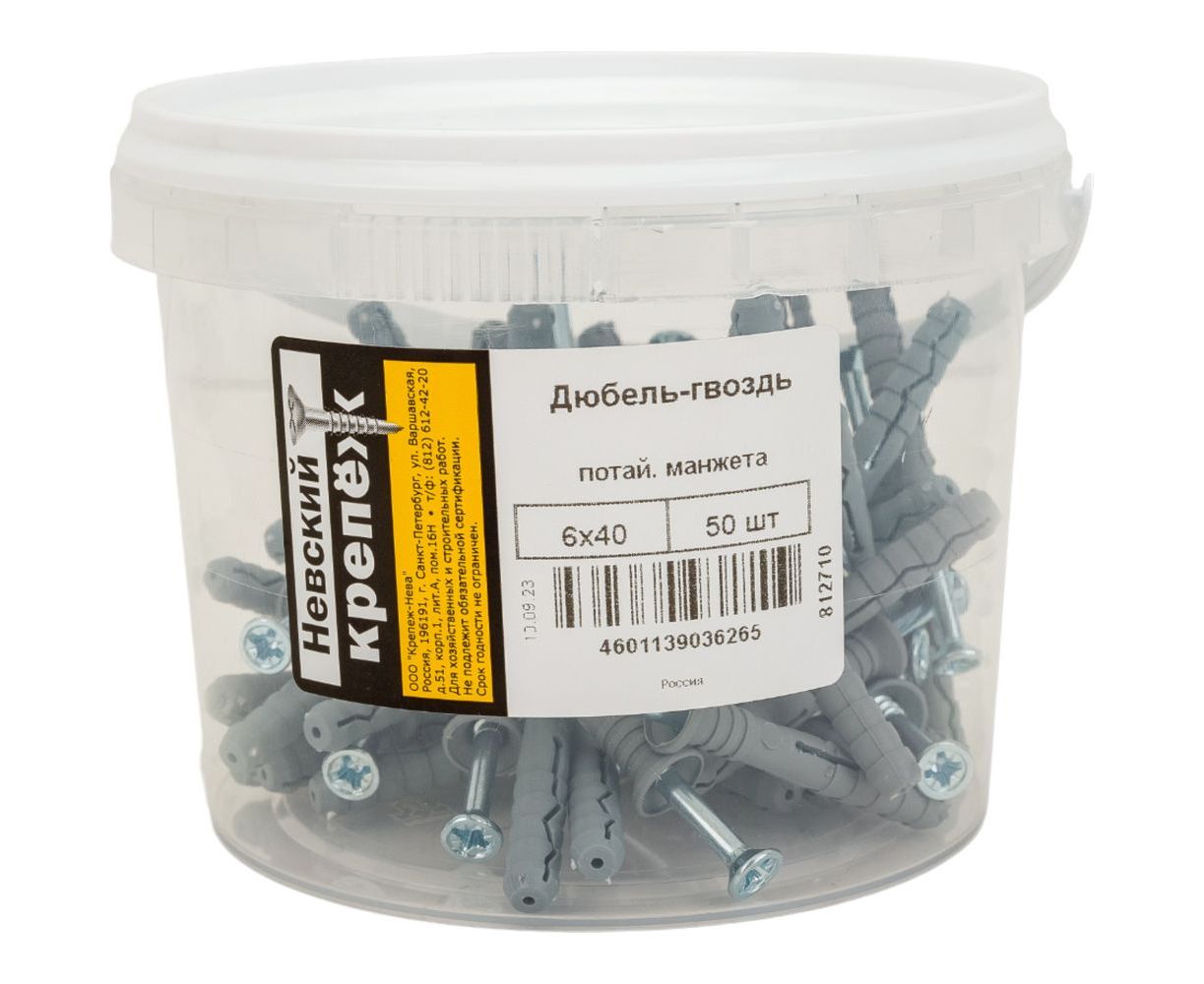 Дюбель-гвоздь Невский Крепеж 6x40, пот. манжета, полипропилен, 50 шт. 812710