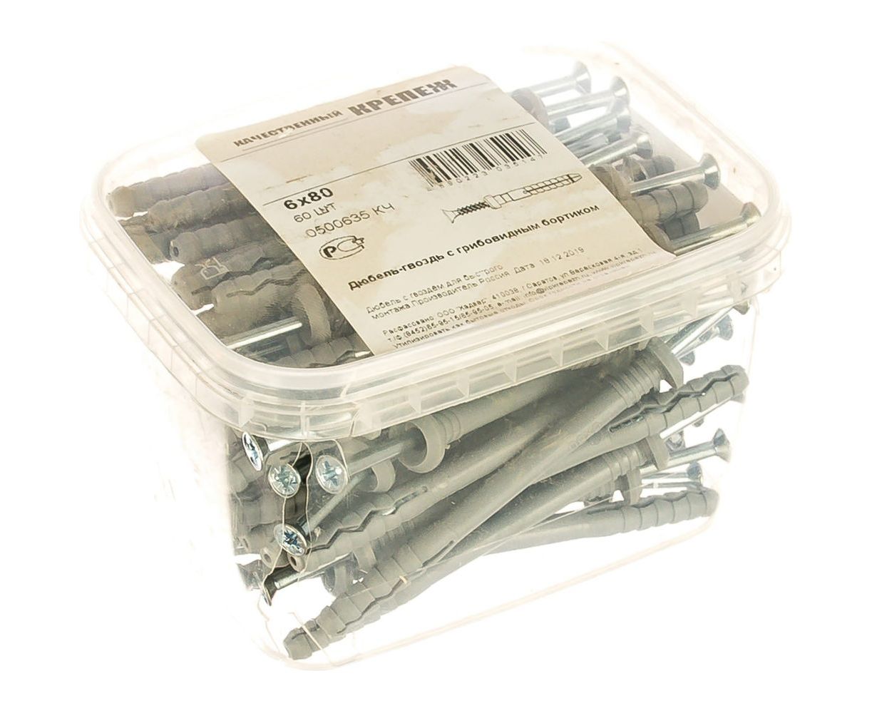 Дюбель-гвоздь с грибовидным бортиком Качественный КРЕПЕЖ 60 штук 0500635 КЧ