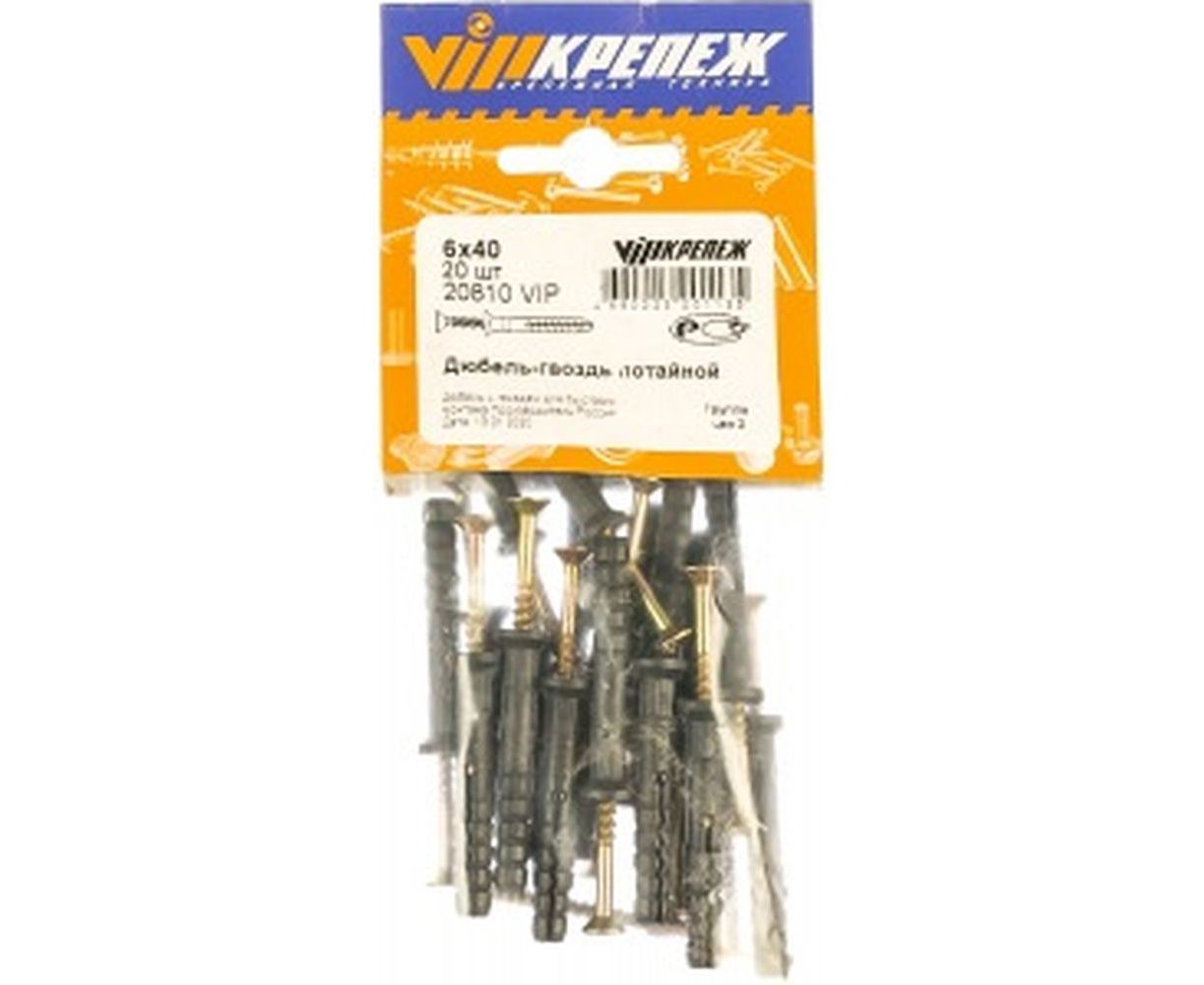 Дюбель-гвоздь VIPКрепеж потайной бортик 6х40 20 шт 20810 VIP
