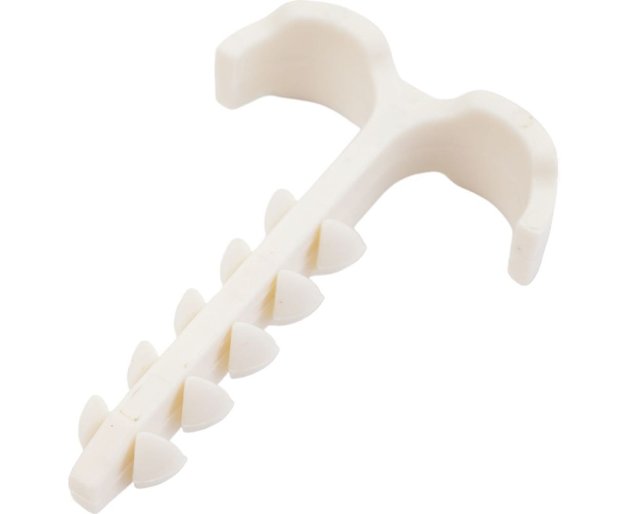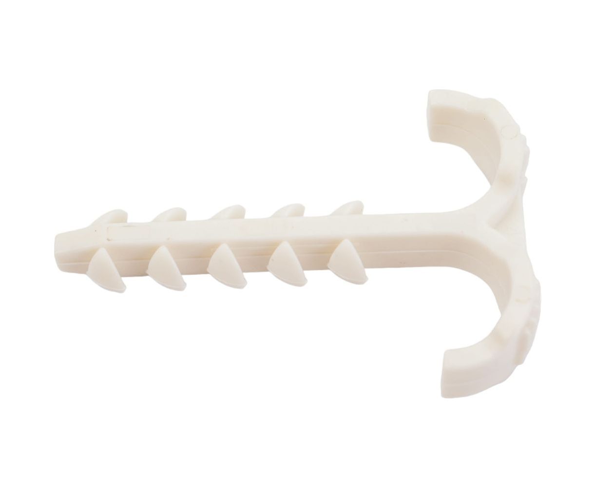 Дюбель-хомут Т-образный IEK изготовлен из полиамида 6.6 высокой прочности. Его особенная Т-образная форма сочетает в себе сразу два элемента: дюбель и скобу, что позволяет проложить 2 кабеля одновременно как вертикально, так и горизонтально. Одинаково эффективен при прокладке кабеля в кирпичных и блочных стенах, бетонных перекрытиях, потолках, полах и фундаментах. Это удобный, быстрый и экономически выгодный способ крепления кабеля при проведении электромонтажных работ.
