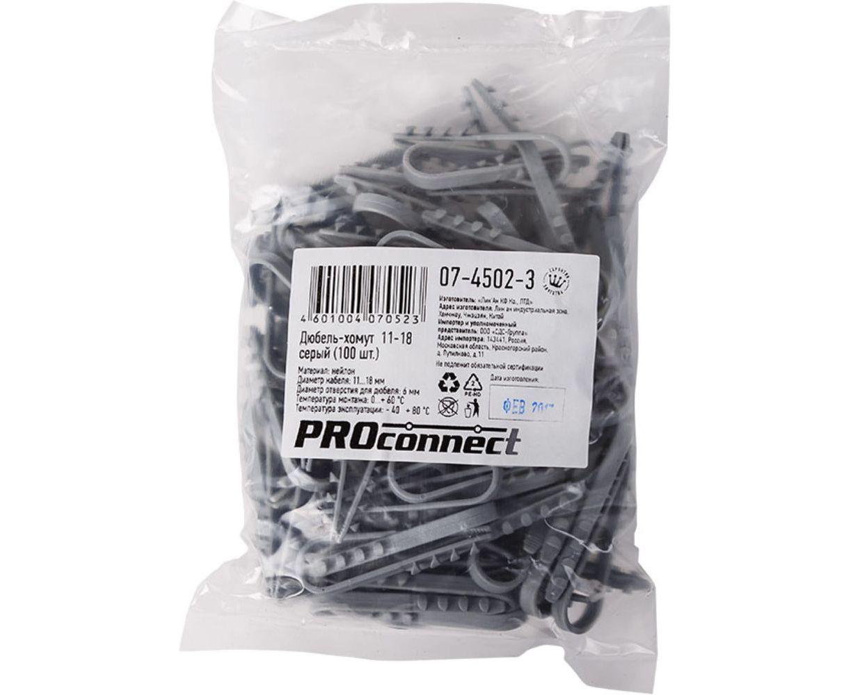 Нейлоновый дюбель-хомут PROCONNECT 11-18 мм, серый, 100 шт. 07-4502-3