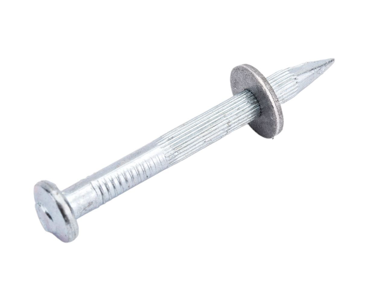 Имеет широкую шляпку, подвижную шайбу и острый наконечник. Шайба необходима для центровки и фиксации дюбель-гвоздя в монтажном пистолете перед выстрелом. Соединение получается неразборным. Запрещается применять дюбель-гвозди для крепления механизмов и оборудования, подвергающихся вибрационным или динамическим нагрузкам. Предварительное сверление отверстия не требуется.