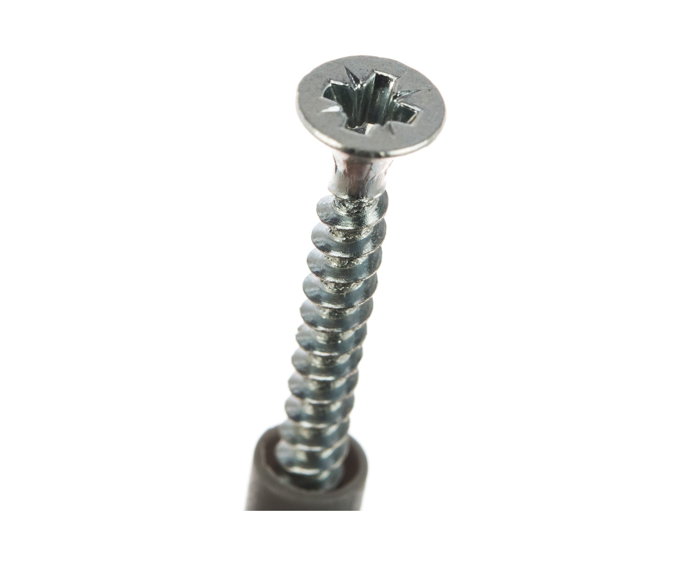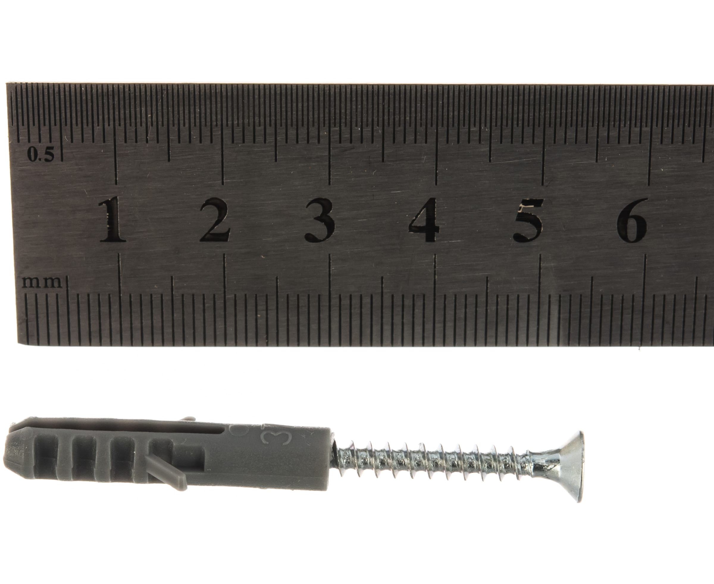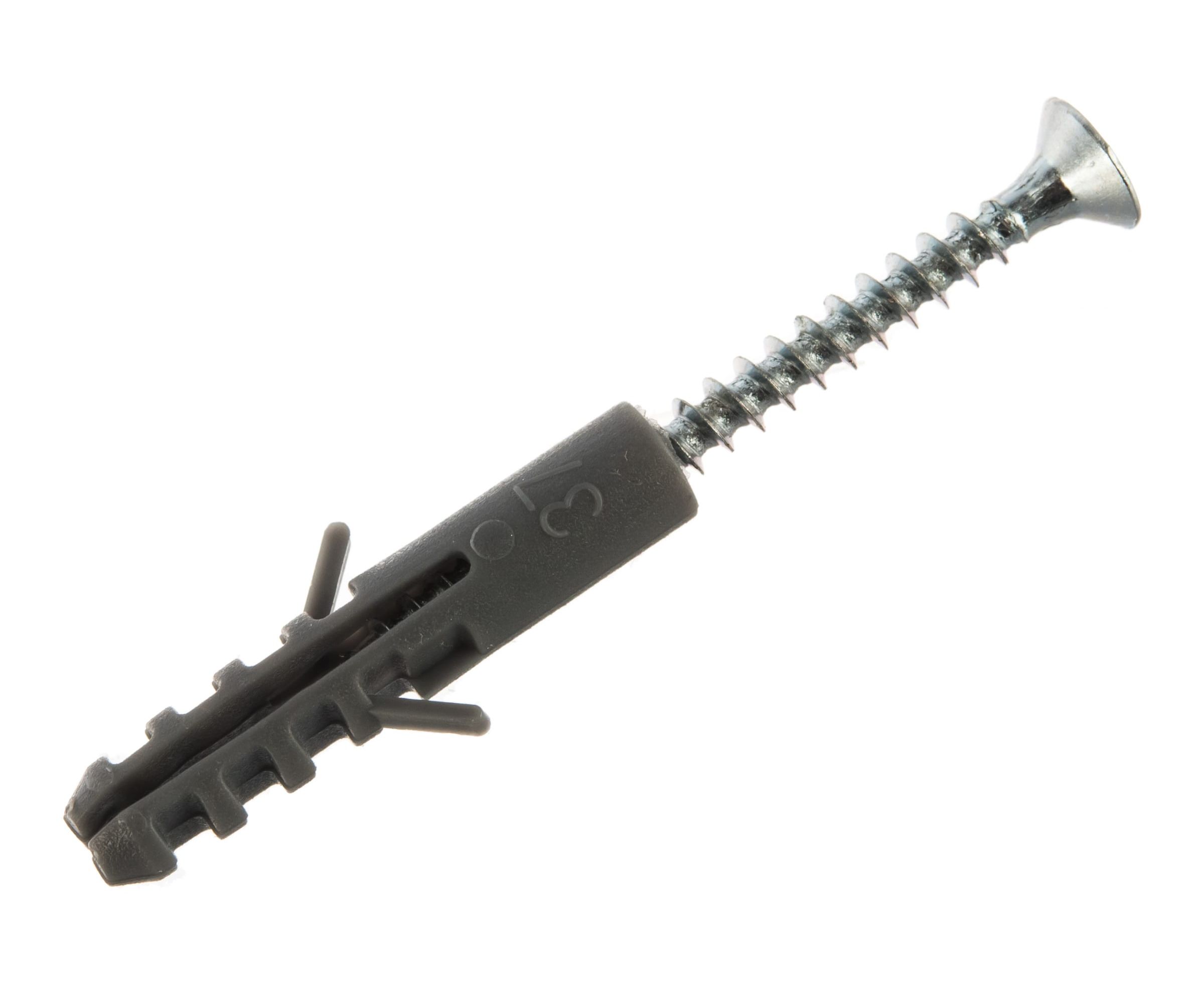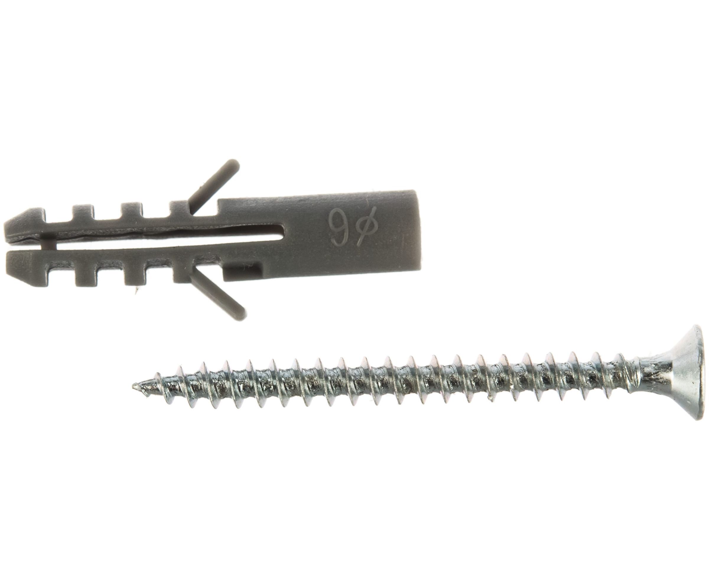 Полипропиленовый дюбель Зубр Евро 30662-06-30 применяется для закрепления легковесных конструкций в плотных материалах (бетон, строительный камень, полнотелый кирпич). Без борта. Прокручиванию дюбеля при монтаже препятствуют стопорные усы, расположенные на гильзе. В комплект входит шуруп с потайной головкой (шлиц Pz). Шуруп изготовлен из оцинкованной стали, что исключает коррозию.