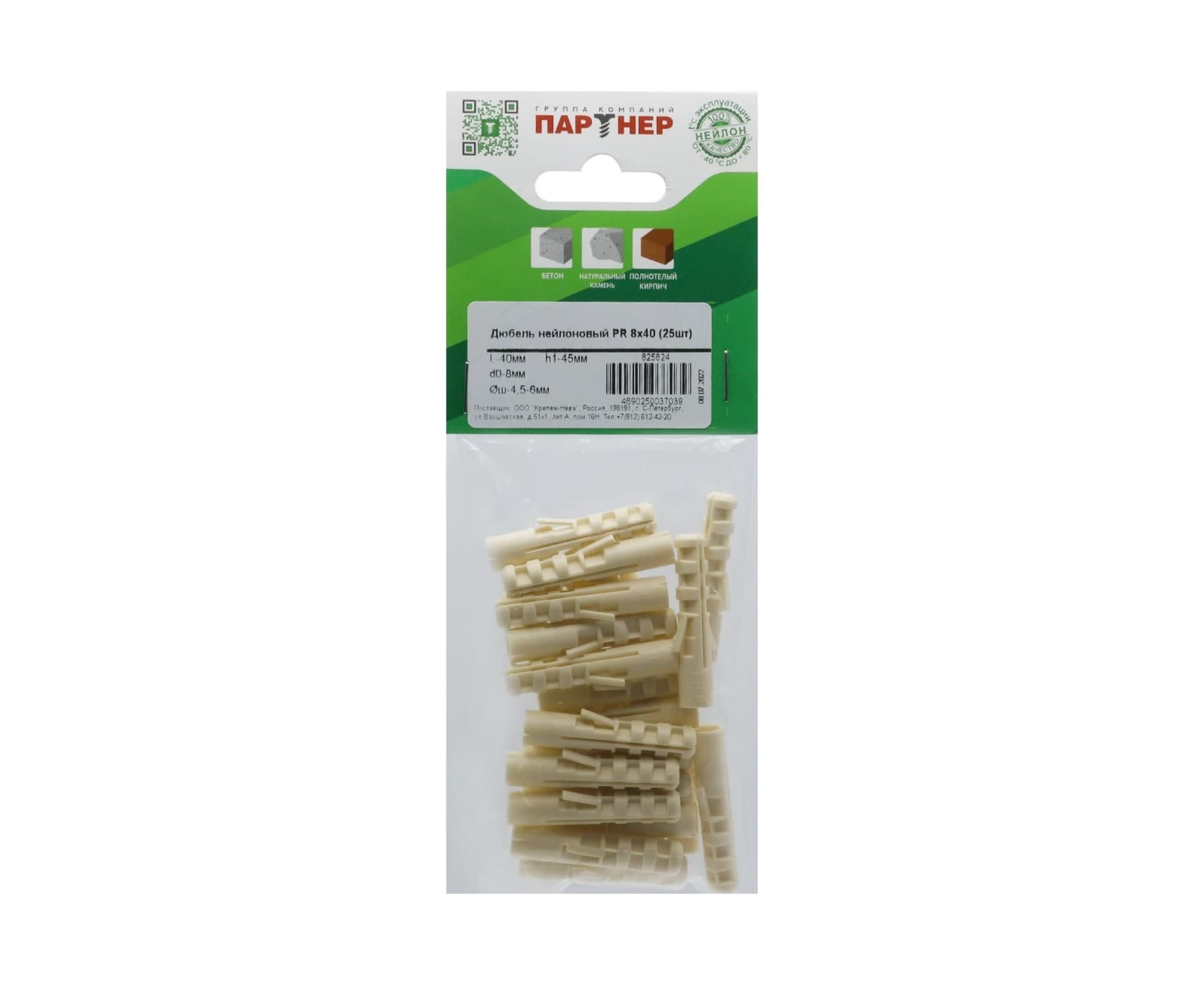 Нейлоновый дюбель Партнер PR 8x40 25 шт. 825624