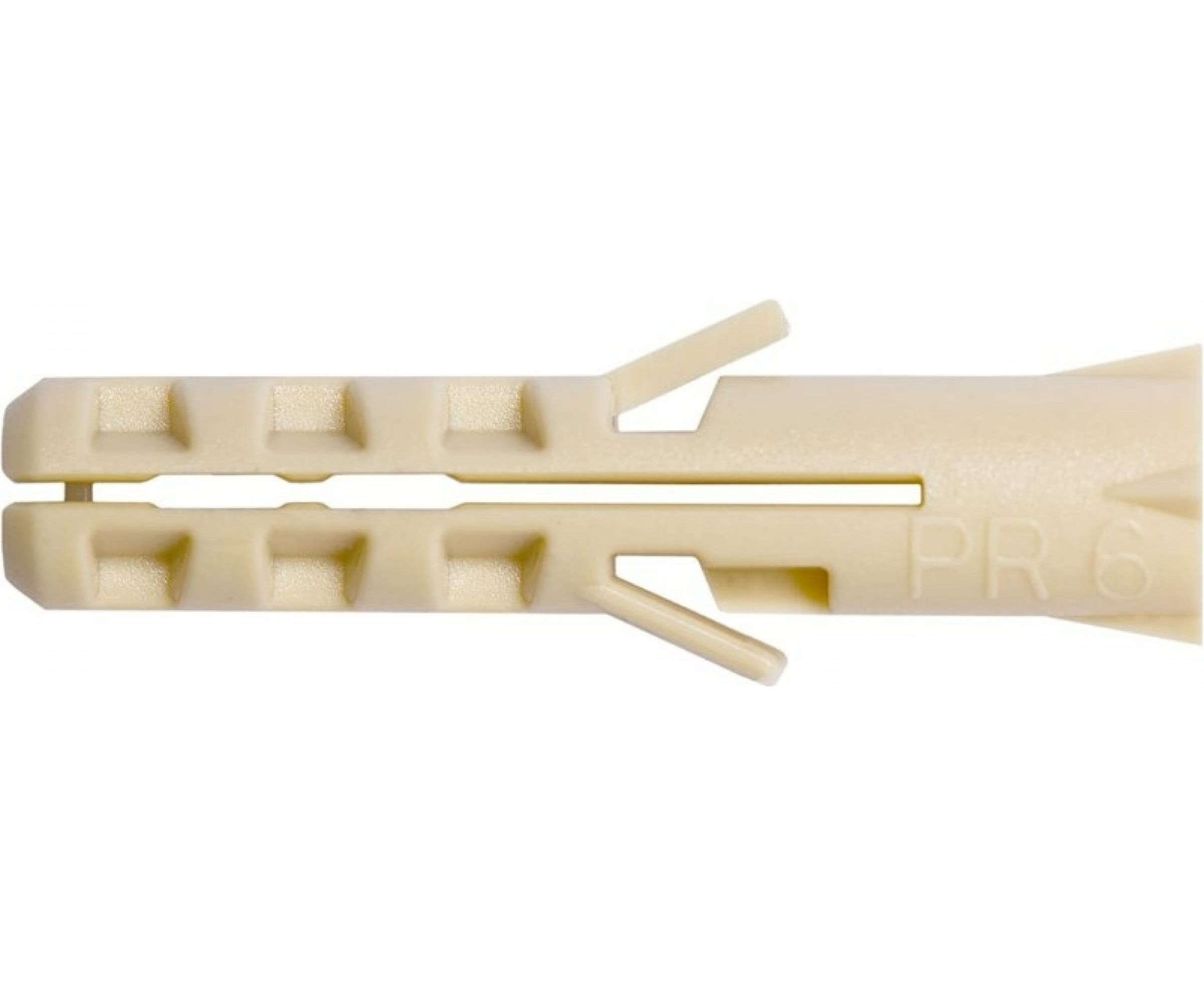 Нейлоновый дюбель с шурупом Партнер PR 6x30 50 шт. 825906 предназначен для крепления легких конструкций к твердым материалам основания: бетон, натуральный камень, полнотелый кирпич. В качестве распорного элемента рекомендуется применение универсальных или сантехнических шурупов. Длина подходящего шурупа определяется как: длина дюбеля + толщина прикрепляемого материала + 5 мм. Дюбели изготавливаются из полиамида PA6 в светло-бежевом цвете.