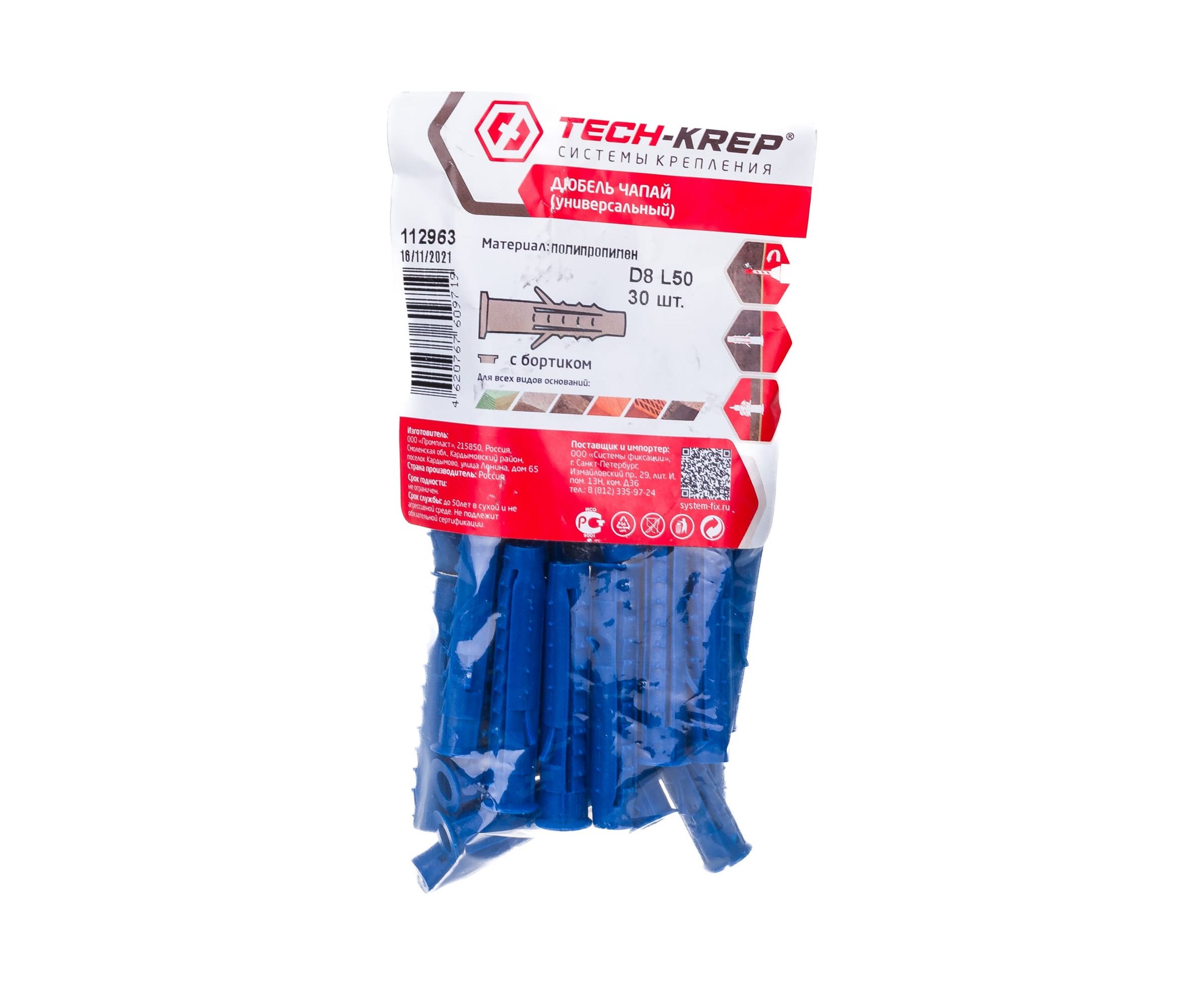 Распорный дюбель Чапай 8х50 шипы+усы, полипропилен 30шт - пакет Tech-Krep 112963