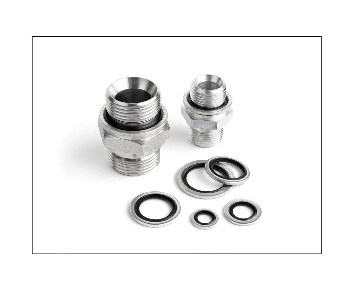 Резинометаллические самоцентрирующиеся уплотнительные кольца USIT состоят из шайбы изготовленной из холоднокатанной стали DC01 и резиновой уплотняющей кромки из нитрилбутадиенового каучука твердостью 70Sh.