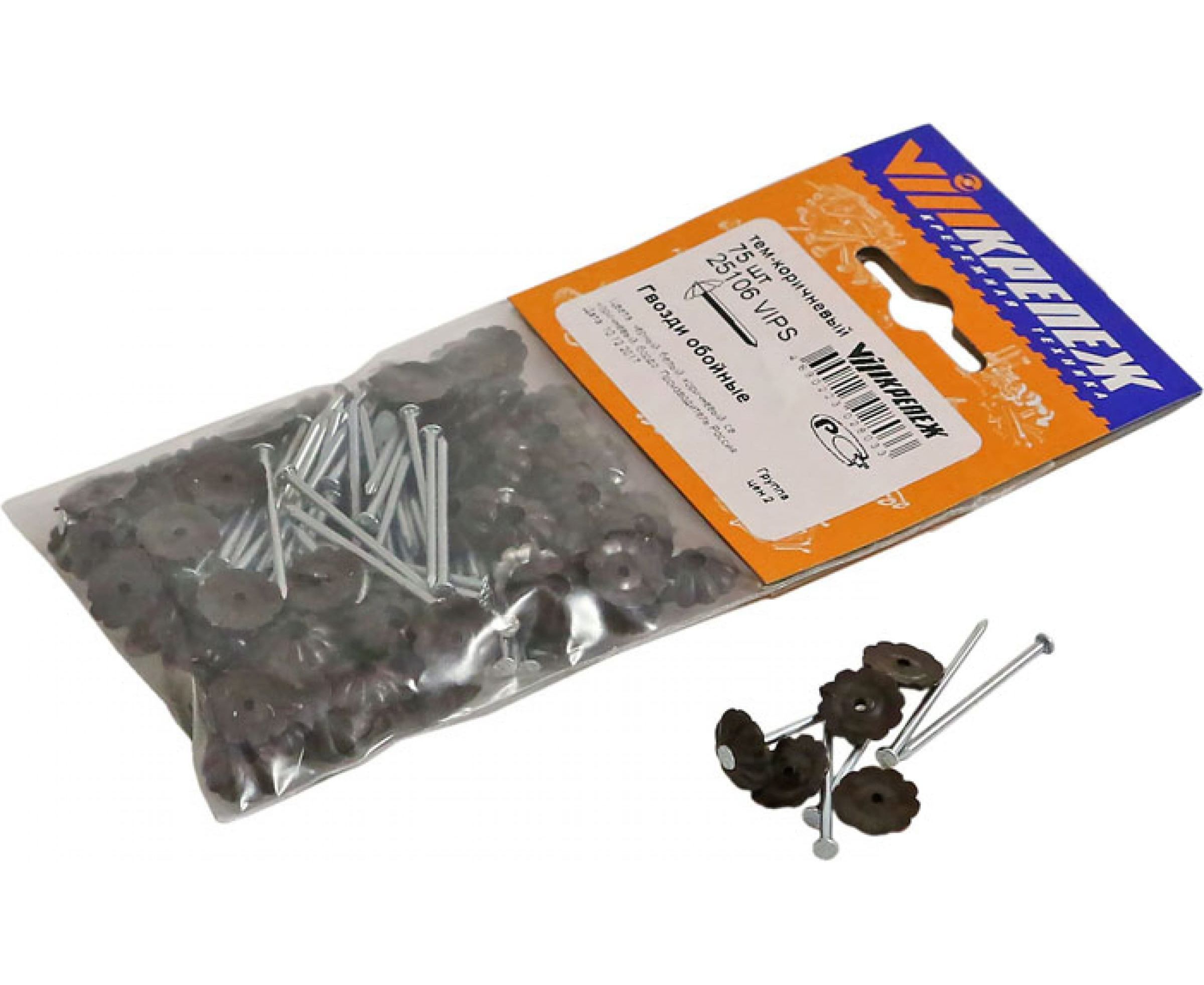 Обойные гвозди с декоративной головкой VIPкрепеж коричневые, 75 шт. 25106 VIPS