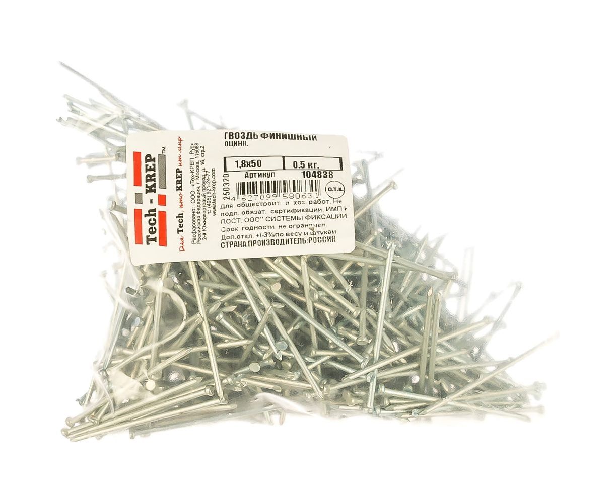 Финишный оцинкованный гвоздь 1.8х50, 0.5кг (485 шт.) - пакет Tech-Krep 104838