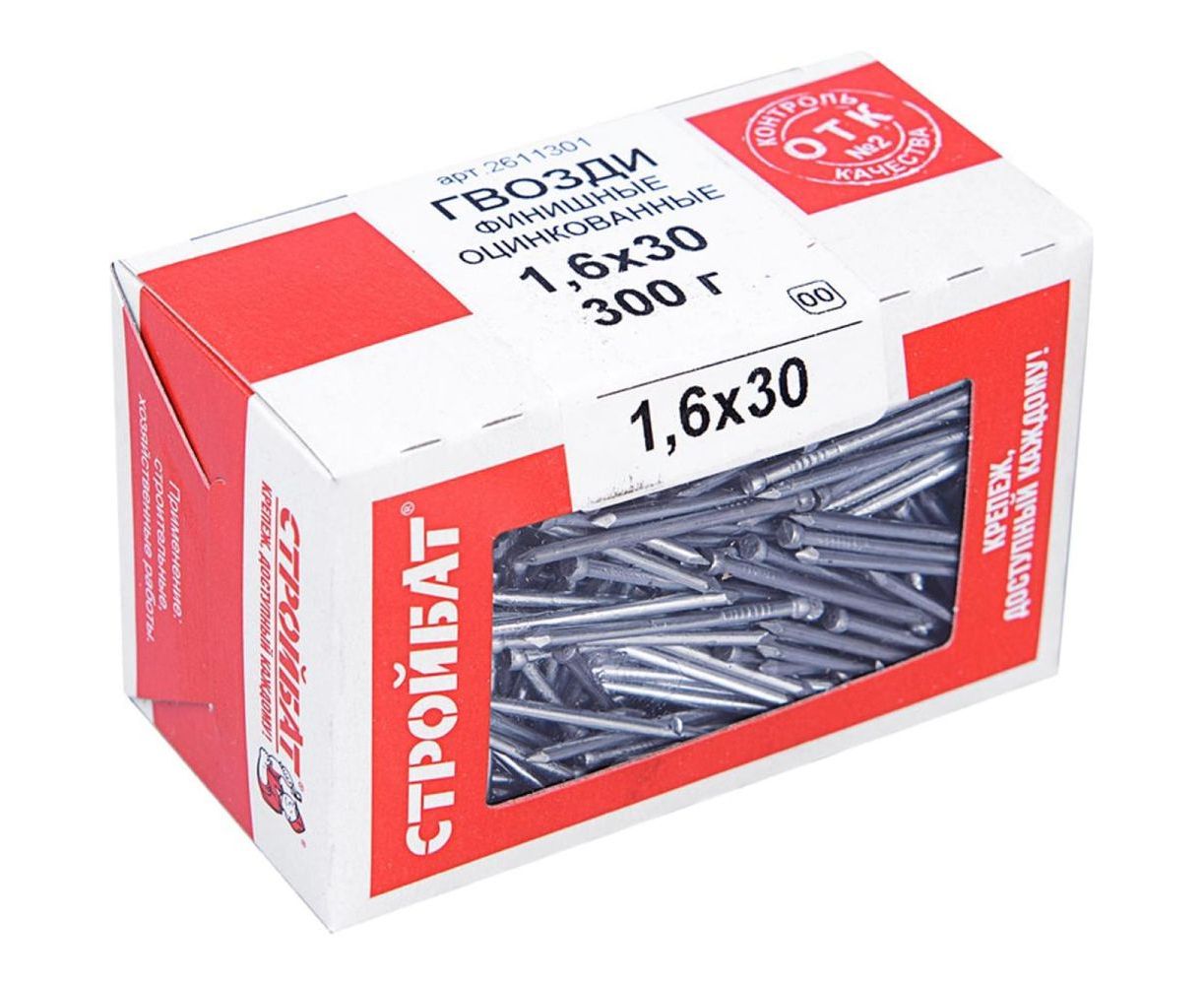 Финишные гвозди Стройбат 1.6x30 мм, белый цинк, 0.3 кг 020411