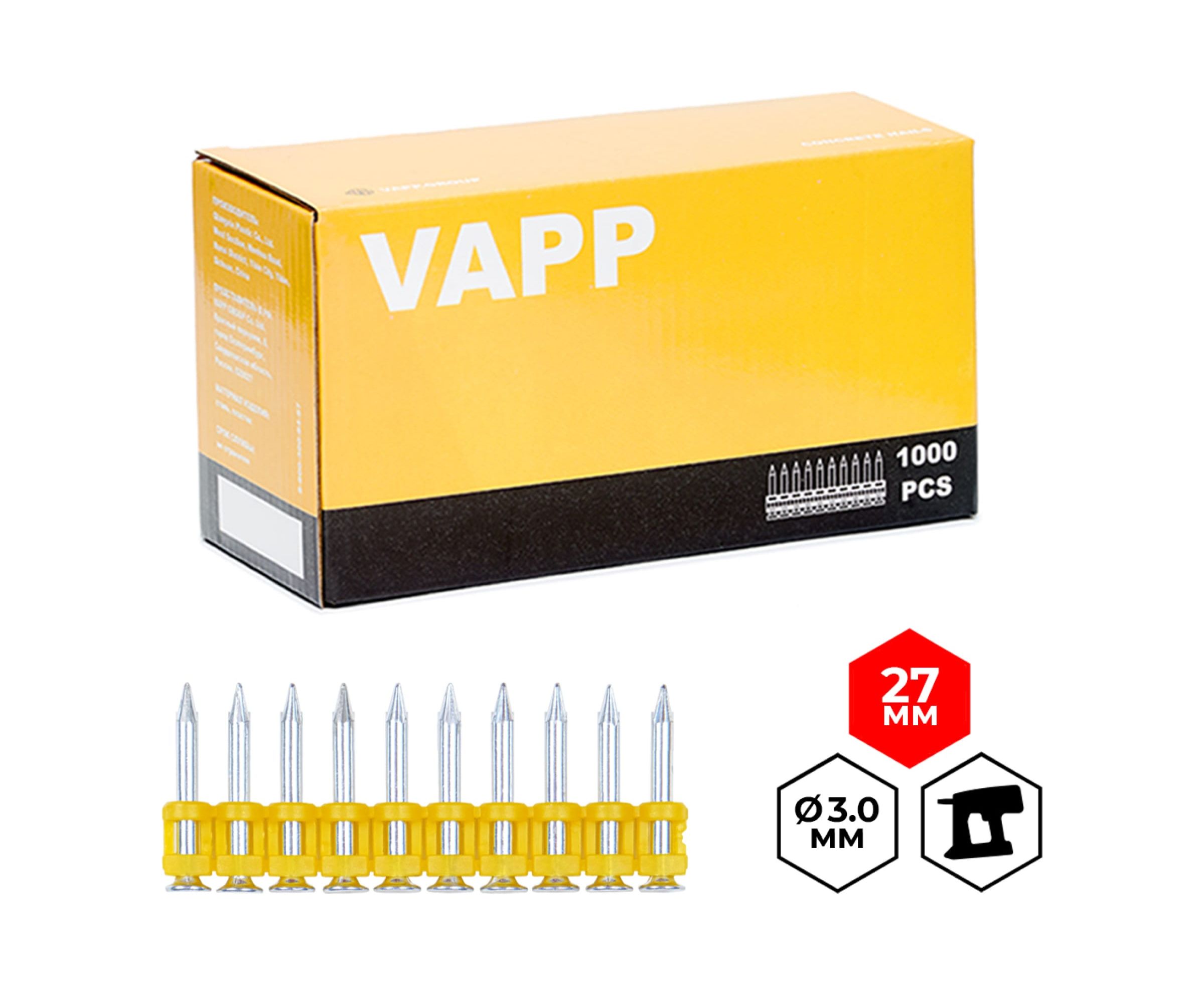 Усиленные гвозди для монтажного пистолета VAPP 27х3 мм VAPP.CN327