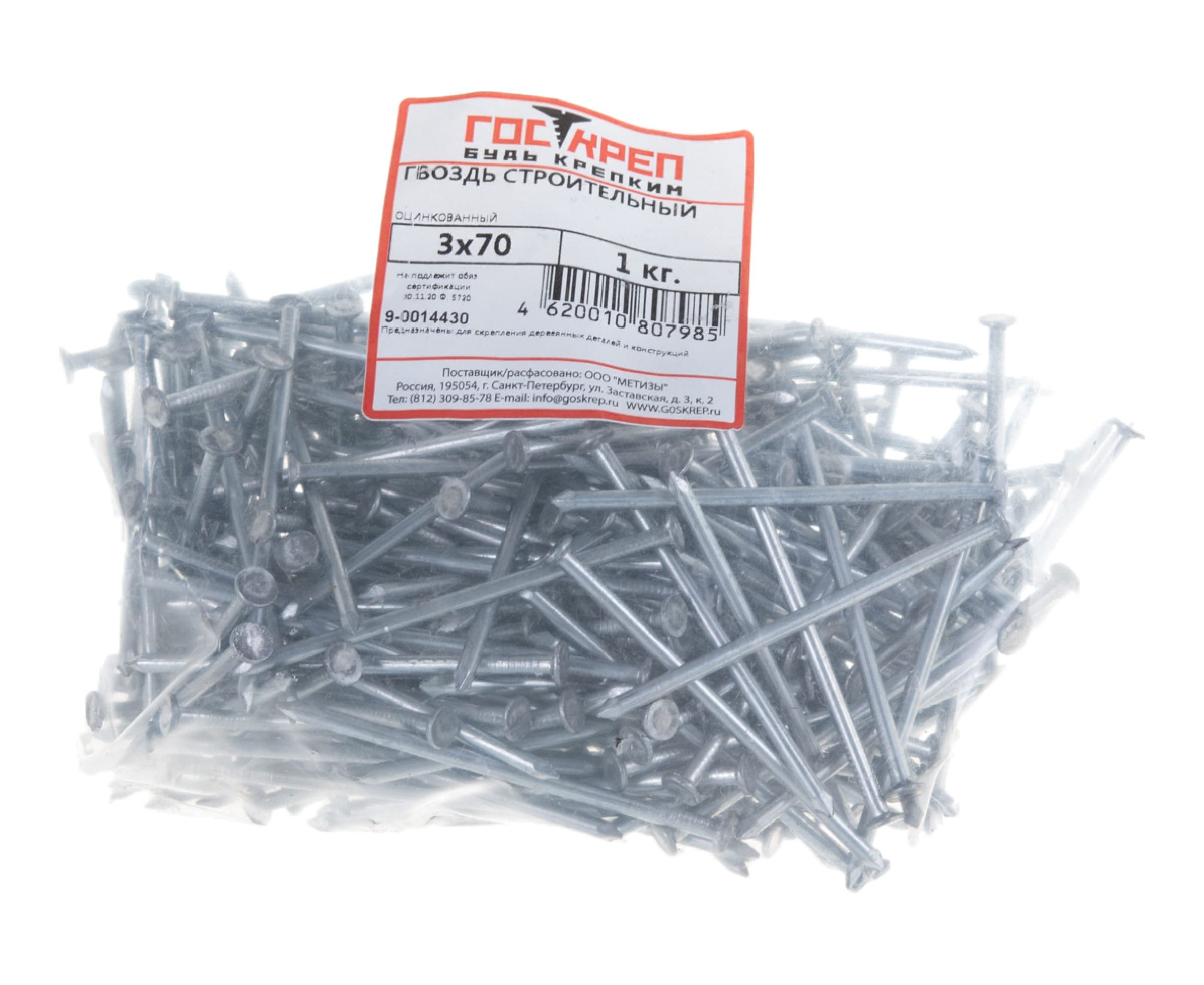 Строительный оцинкованный гвоздь ГОСКРЕП 3,0х70 1 кг, пакет 9-0014430