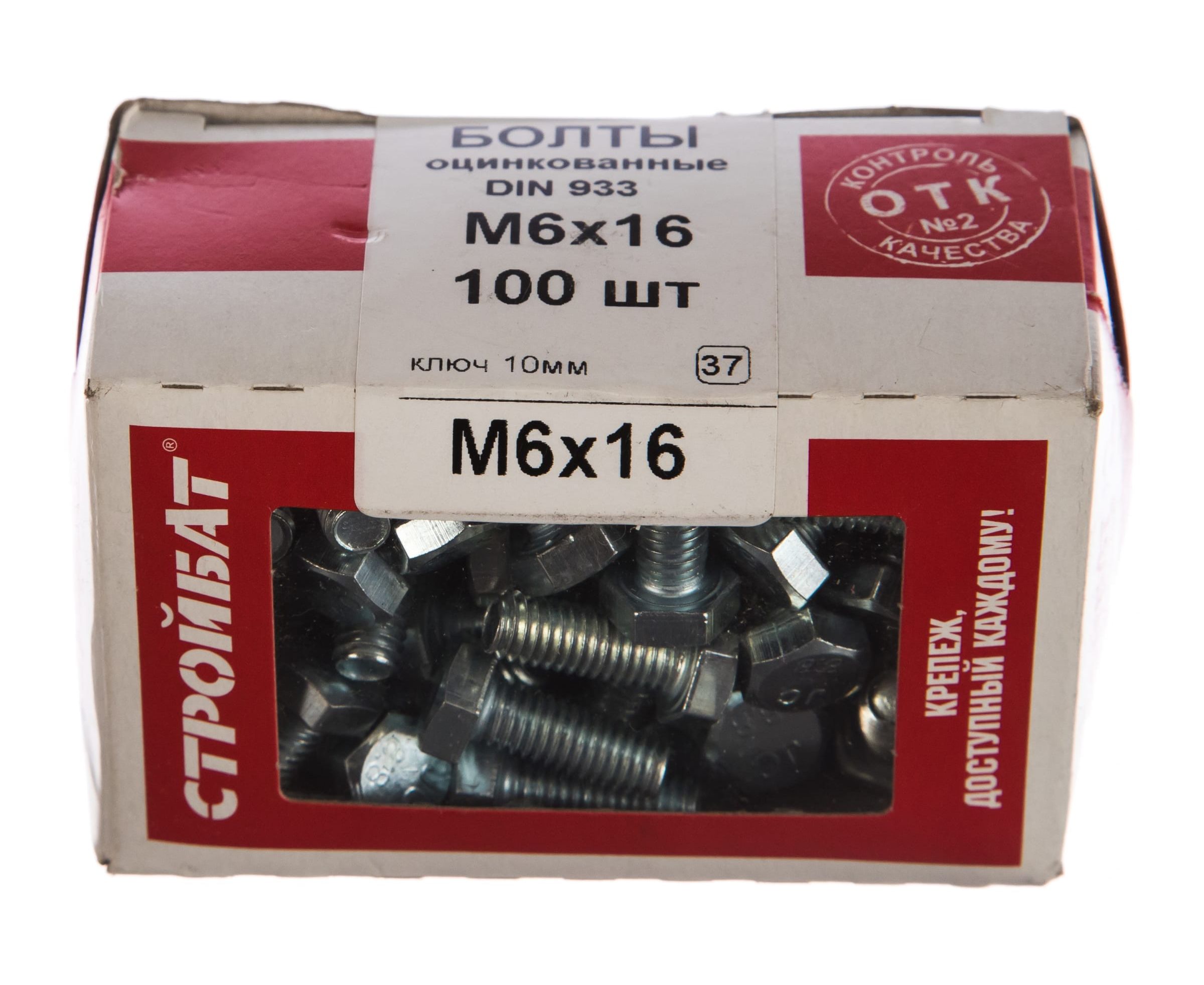 Оцинкованные болты Стройбат DIN 933 М6х16 100 шт. 2630014/005501