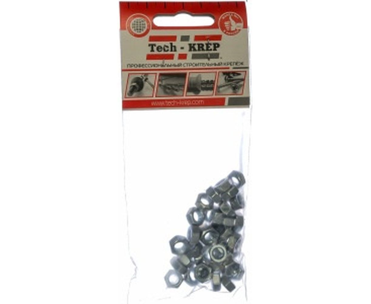 Шестигранная гайка DIN 934 оцинкованная М6, 40шт - пакет Tech-Krep 103025
