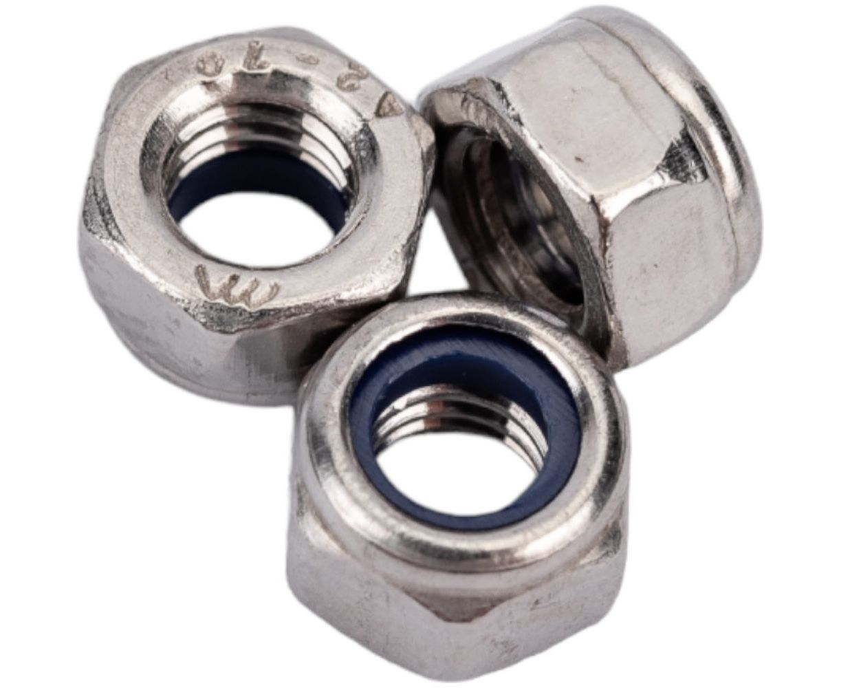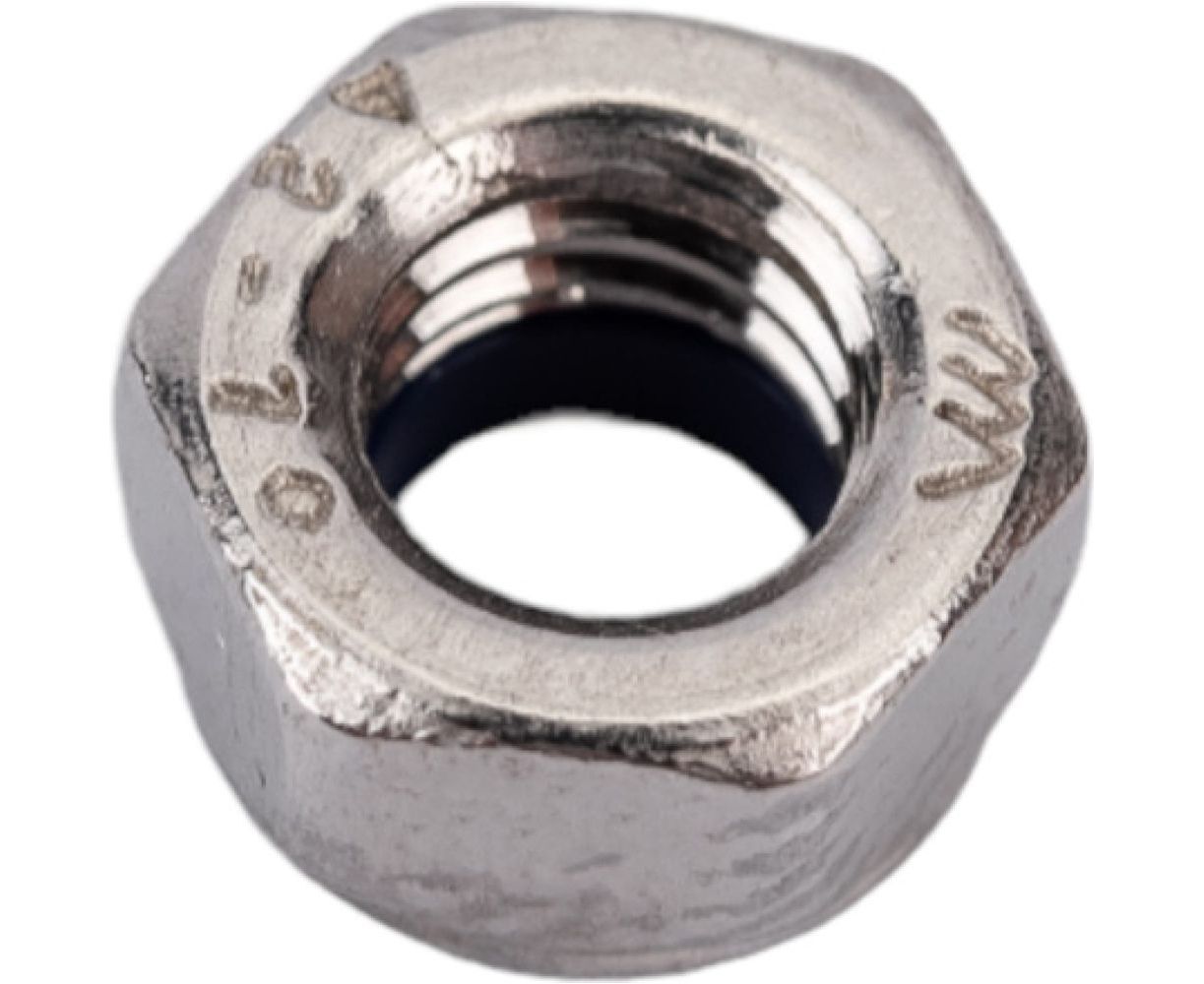 Самоконтрящаяся гайка Невский Крепеж DIN 985 М5, нерж. сталь, 10 шт. 923051 незаменима в строительстве, приборостроении, машиностроении и служит для создания надежных резьбовых соединений в особо ответственных случаях. Принцип работы такой гайки заключается в обжатии резьбы нейлоновой вставкой при закручивании, что создает дополнительное трение между изделием и болтом, анкером. Крепежный элемент активно применяется для фиксации деталей и конструкций, подверженных сильным вибрациям.